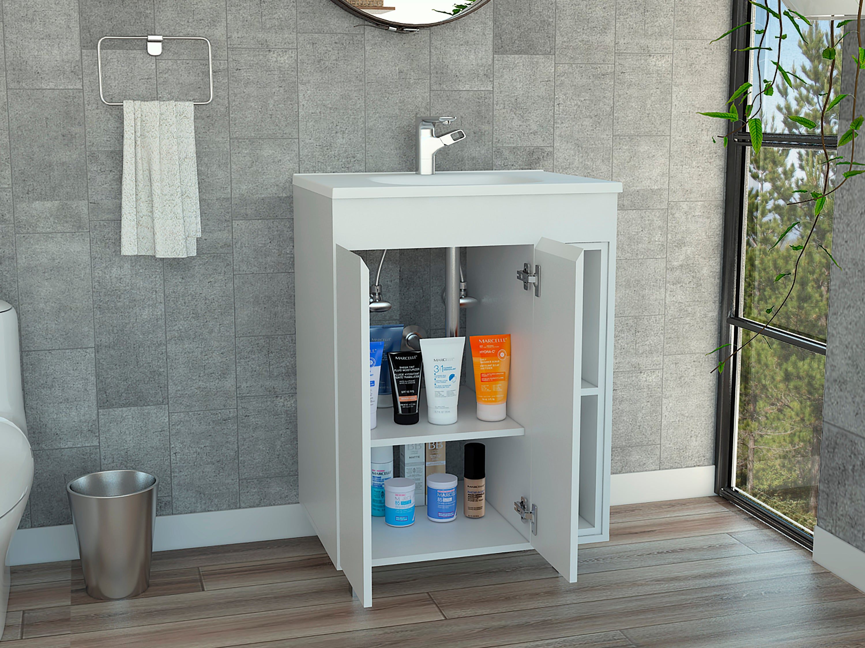 White Entertainment Center with 4 Shelves & Legs (17.8" H)