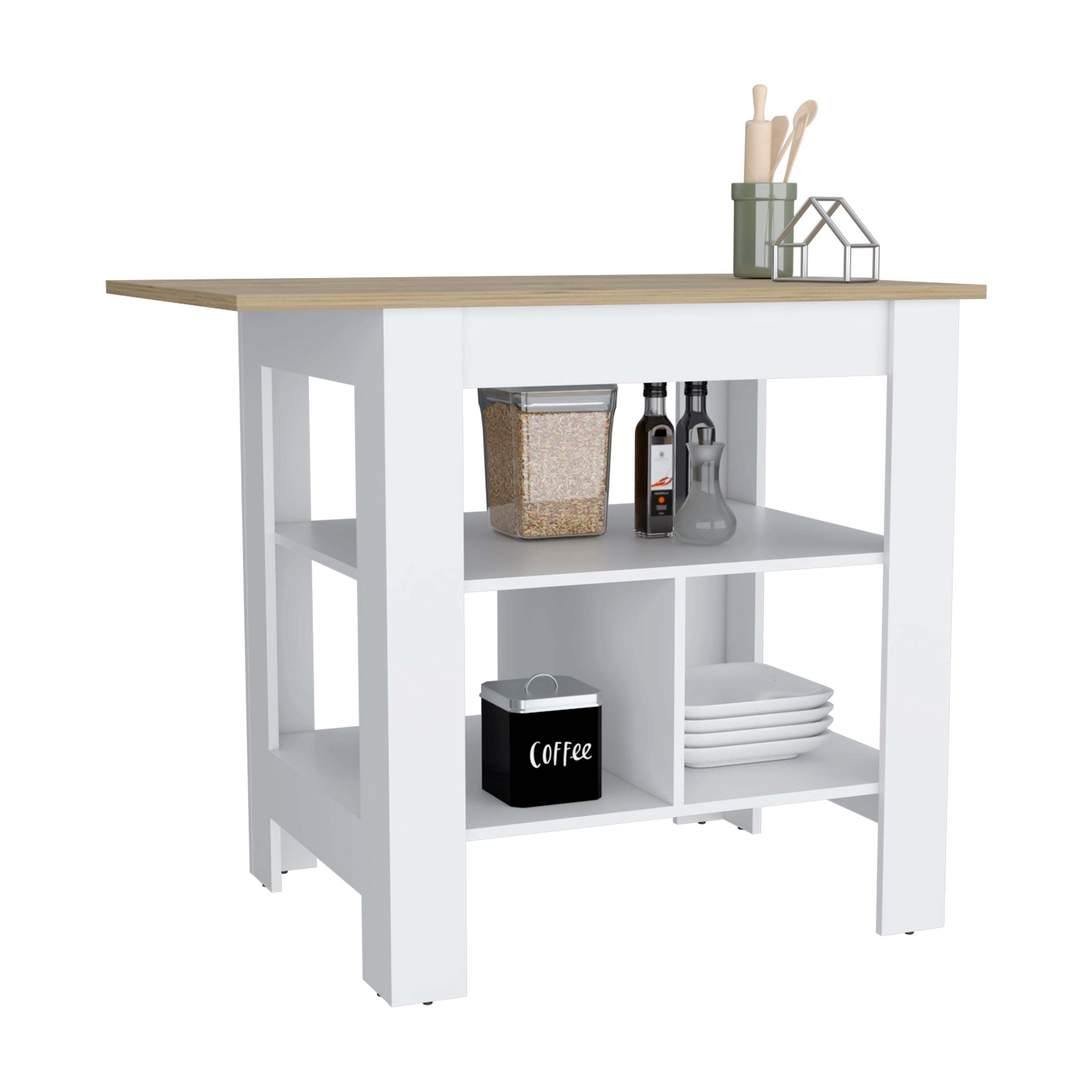 White Kitchen Island Table w/ Storage Shelves (35"H)