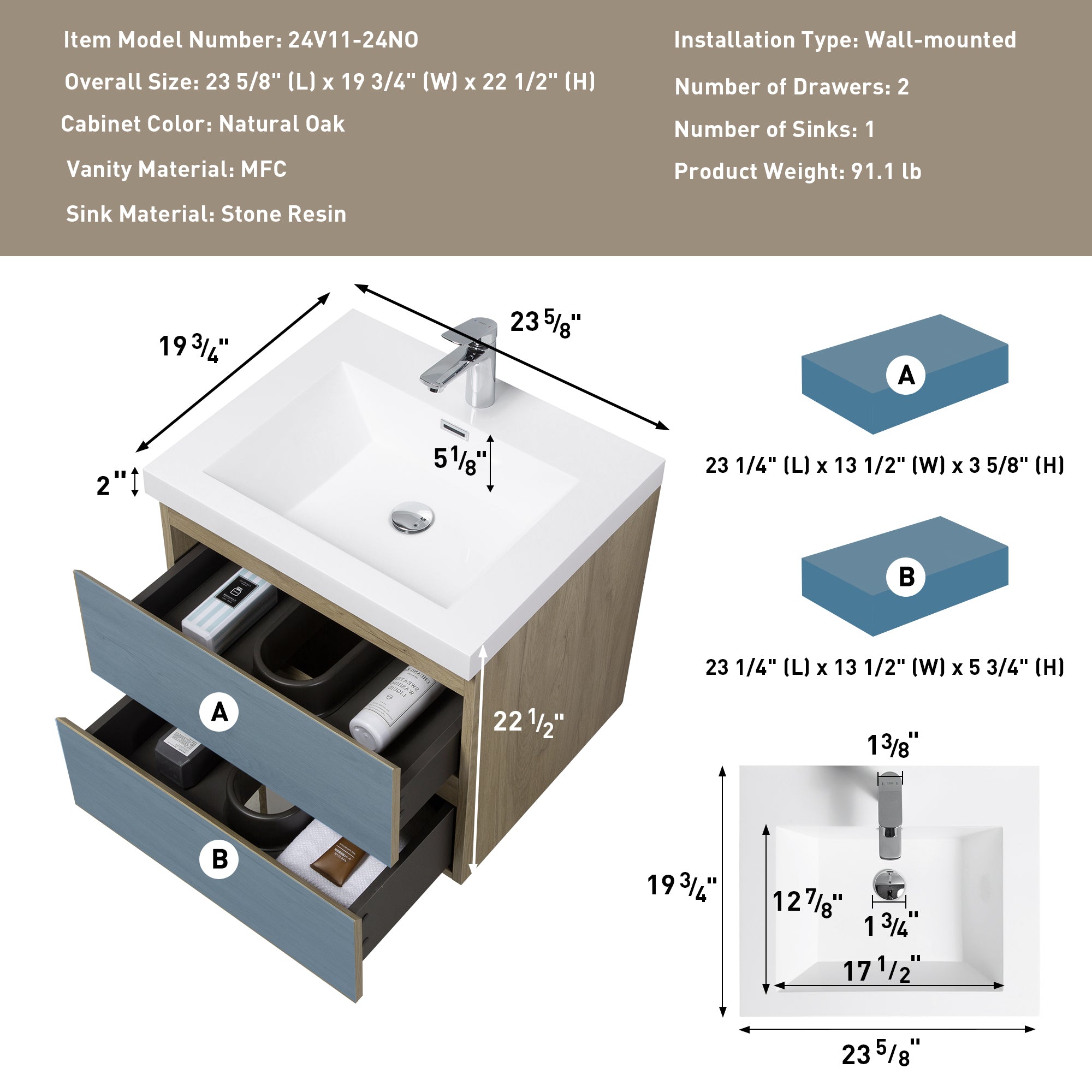 24" Wall-Mount Bathroom Vanity with Sink & Cabinet