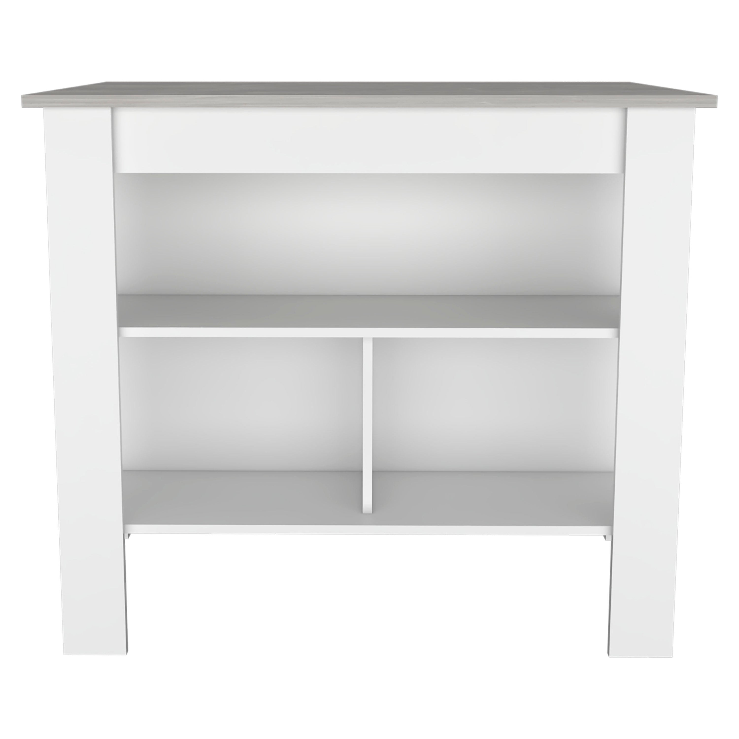 Allen 47" Kitchen Island w/ Shelves & Bar Table - White/Oak