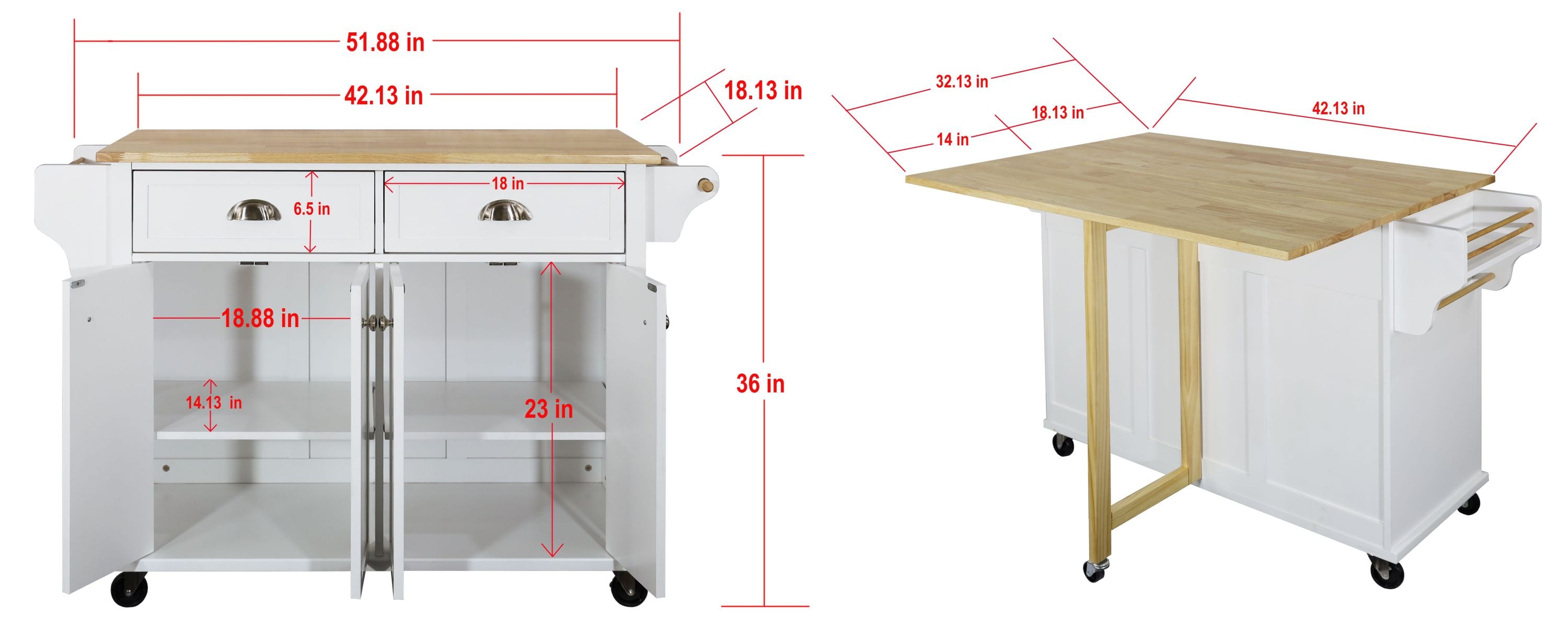 K&K 51.2" Kitchen Island Cart w/ Drop Leaf & Storage - Black