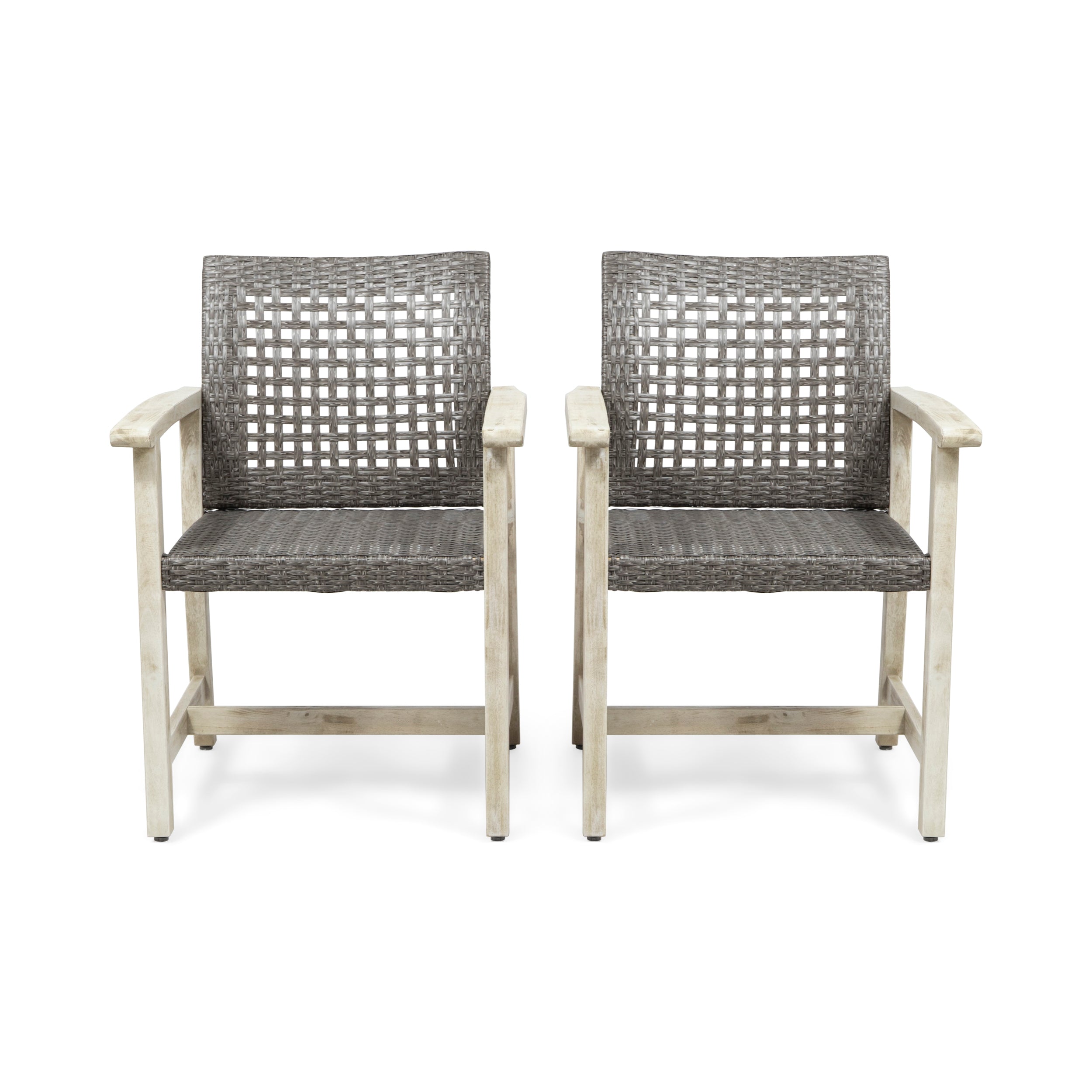 Wood & Wicker Patio Dining Chairs (Set of 2) - Hampton Style