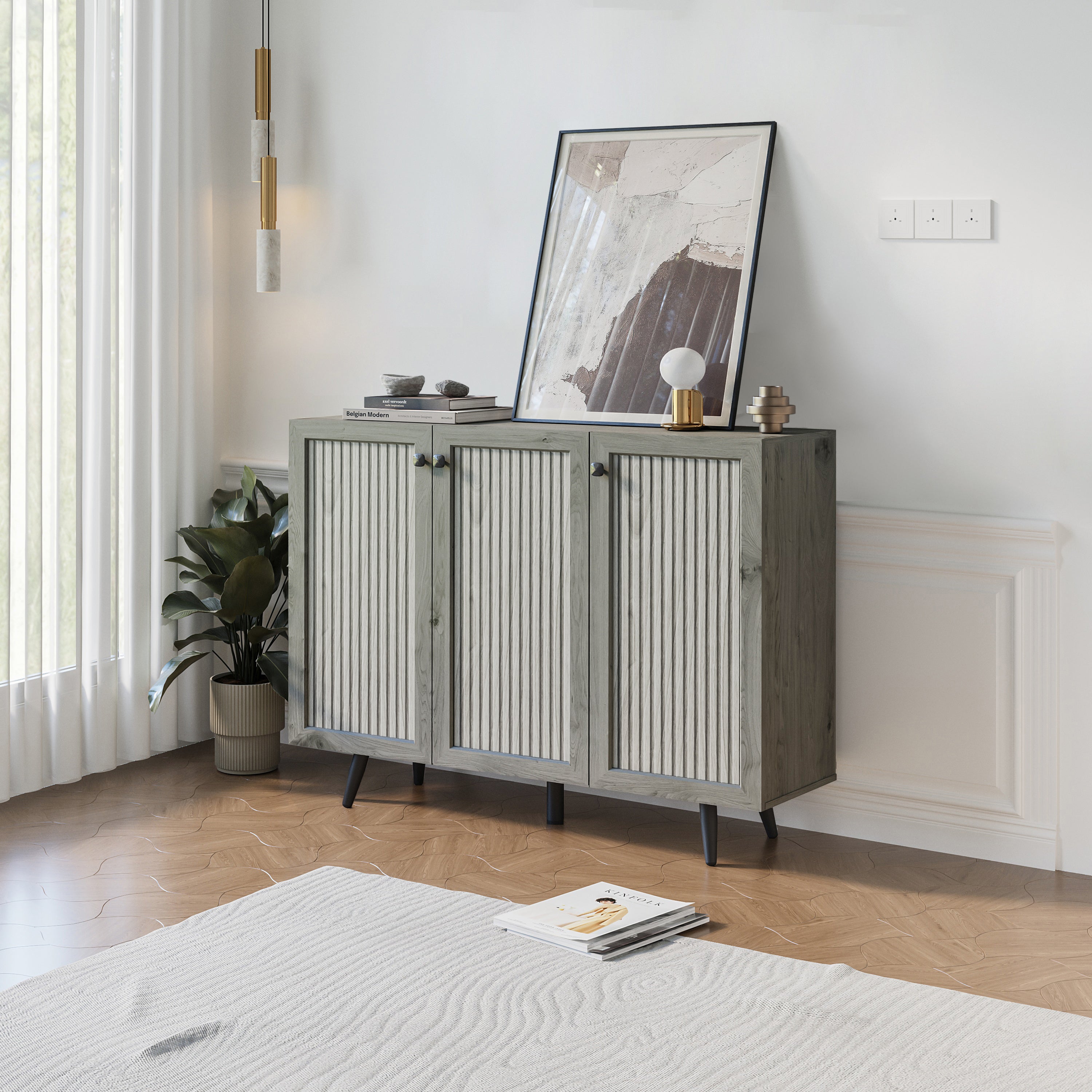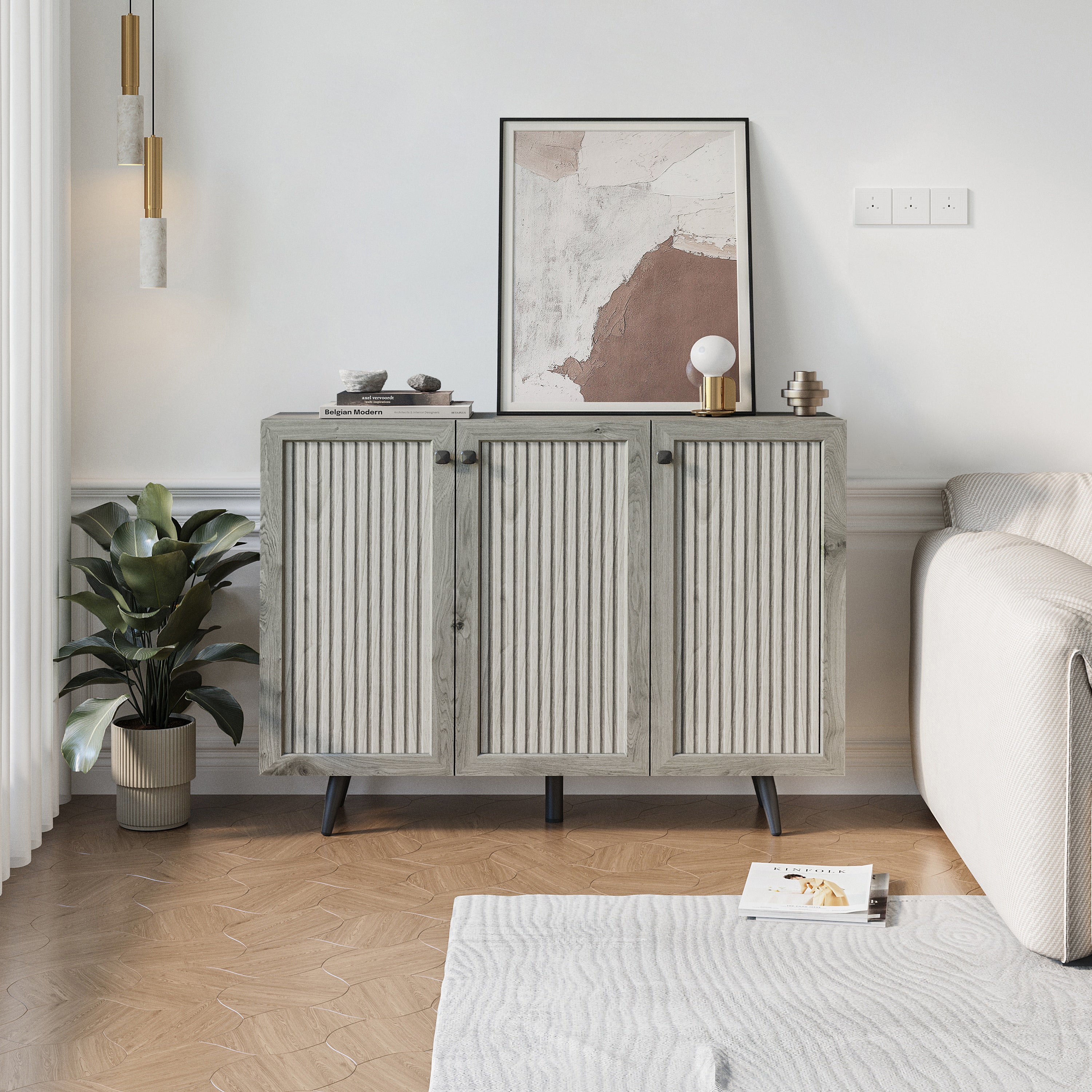 Farmhouse Buffet Cabinet: Gray Wash Storage & Wine Rack