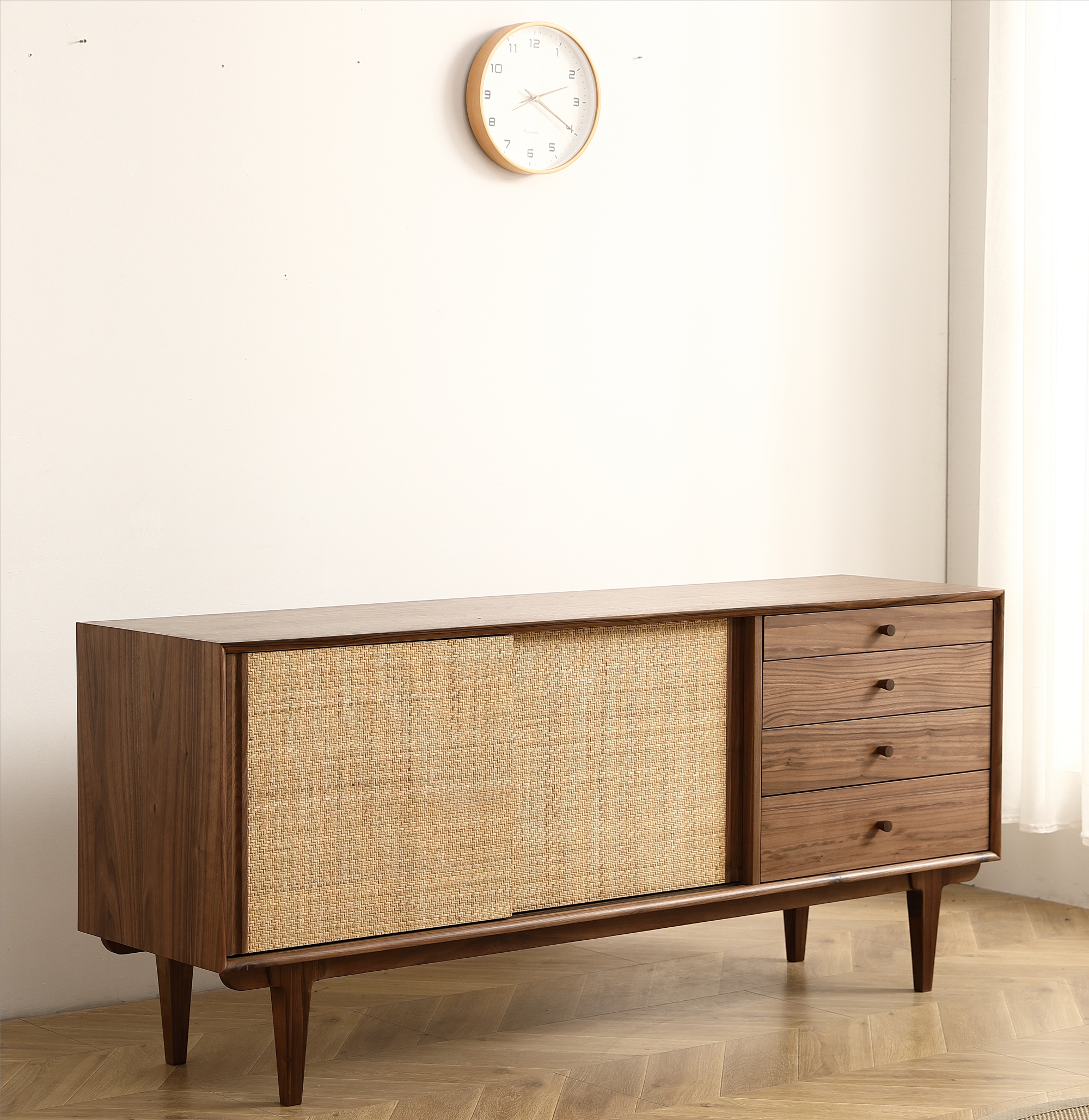 Rattan Woven Sideboard Cabinet - 69" Black Walnut