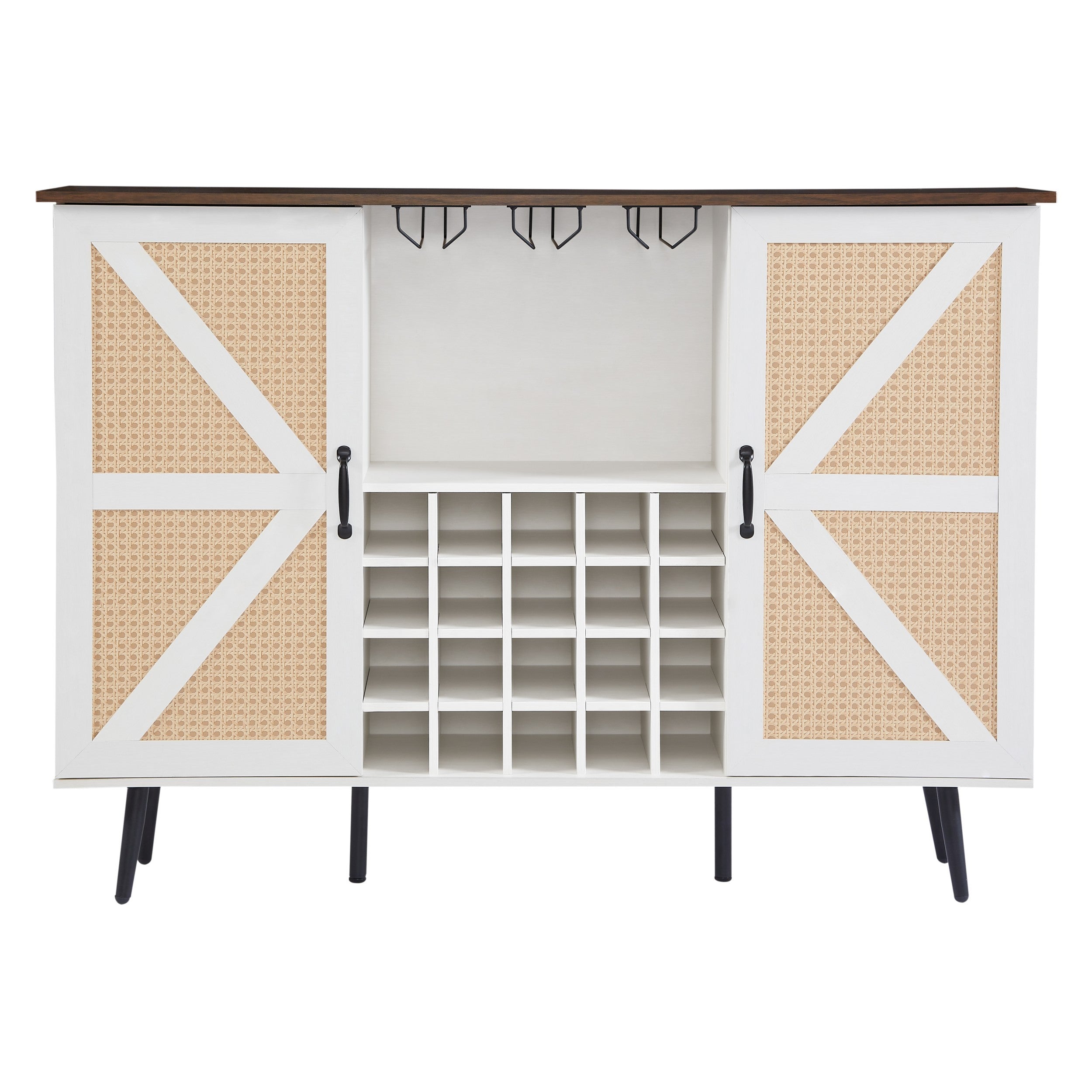 Rustic Oak Sideboard: 65" Faux Rattan Barn Door Cabinet