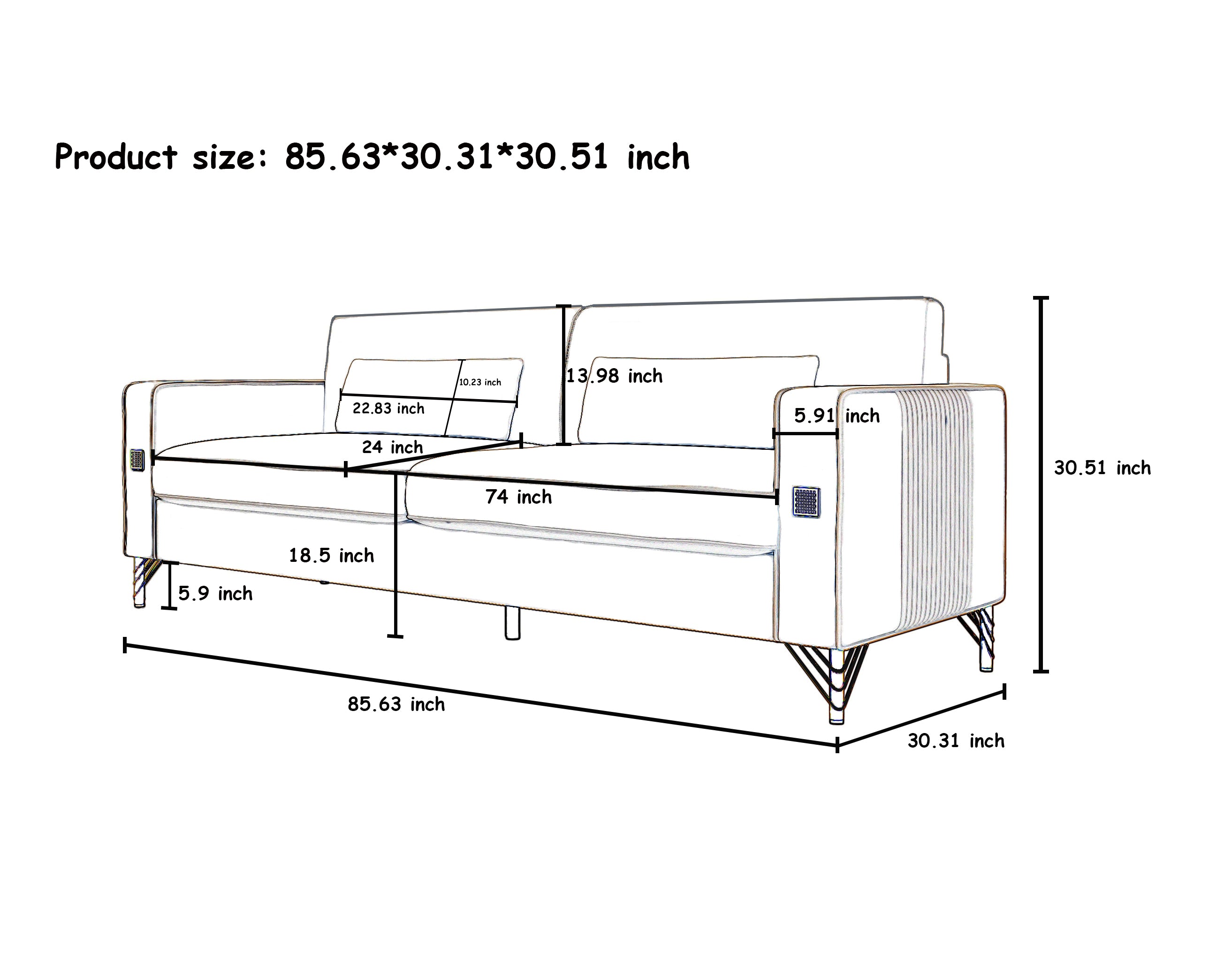 83" Nailhead Trim Sofa: Deep Seat Rolled Arm Couch