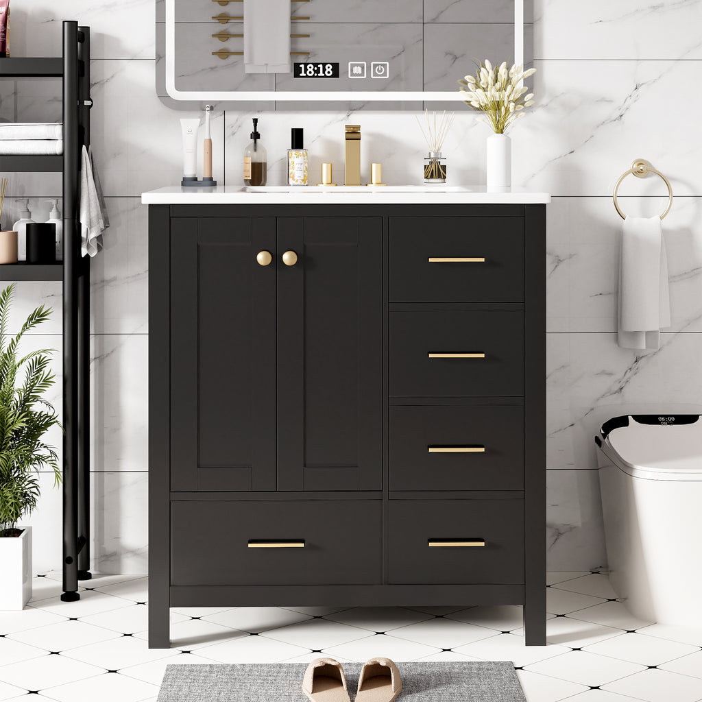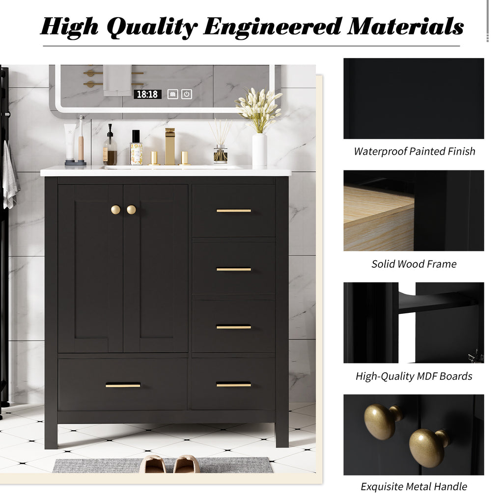 - [ Multi-Purpose Cabinet & Concealed Storage ] Are you looking for stylish and functional storage solutions for your bathroom? Our bathroom vanity provide ample space for all your toiletries and bathroom essentials. The combination of the cabinet body and the drawer perfectly stores all kinds of bathroom products and keeps the necessities away from water stains and dust. Soft-close doors and drawer fronts feature a water-resistant paint finish for durability.
