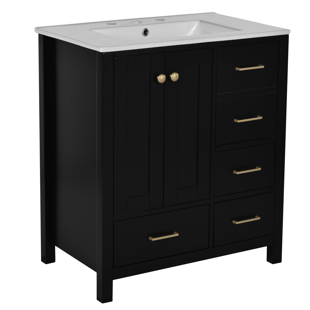 - [Amber Storage] In order to meet your storage needs for various items, this bathroom vanity is equipped with very sufficient storage space. The entire bathroom cabinet has four drawers for daily necessities, and a cabinet for medium and large items .