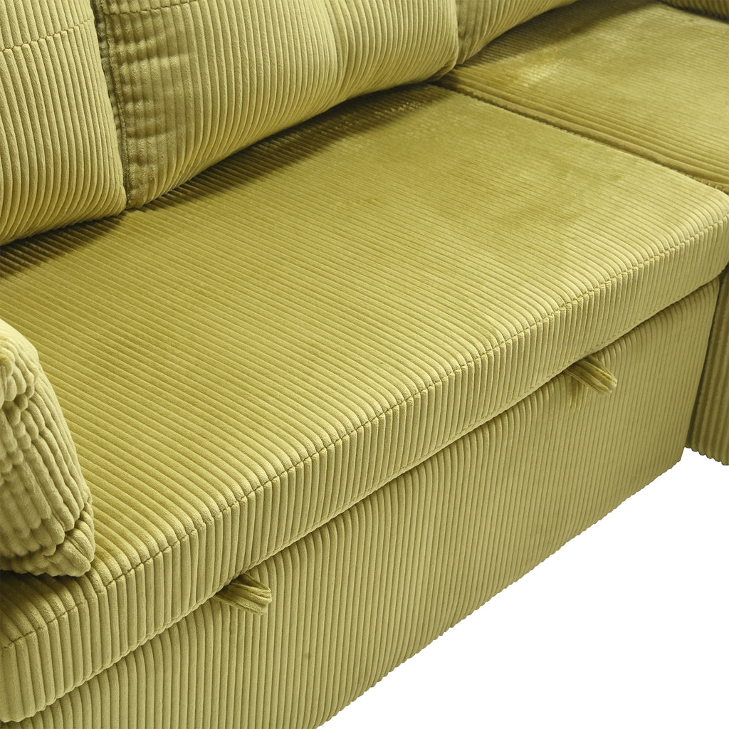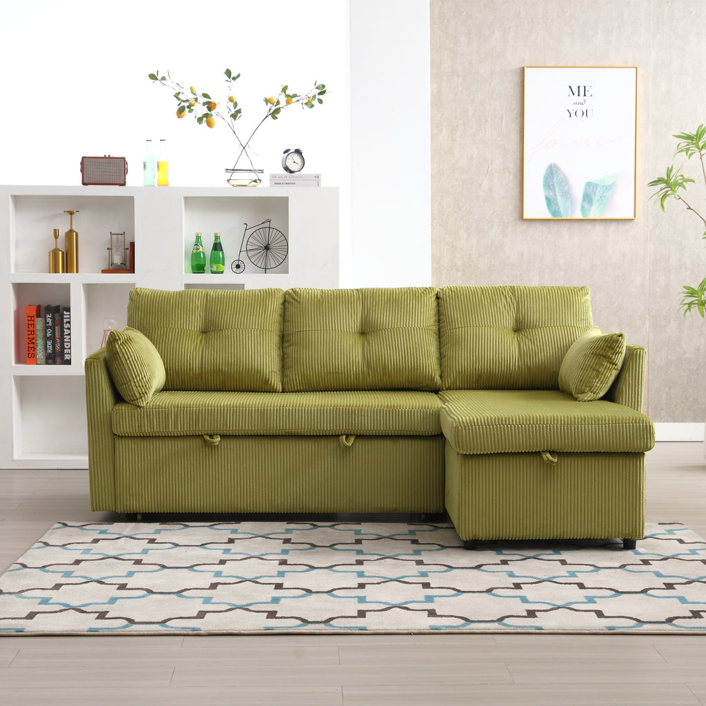 - Corduroy Reversible Sleeper Sectional Sofa with Storage Chaise