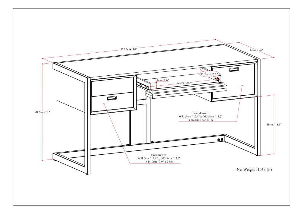 - Features a flip down pull-out keyboard tray, three drawers- (1)deep drawer with hand pulls and metal drawer glides