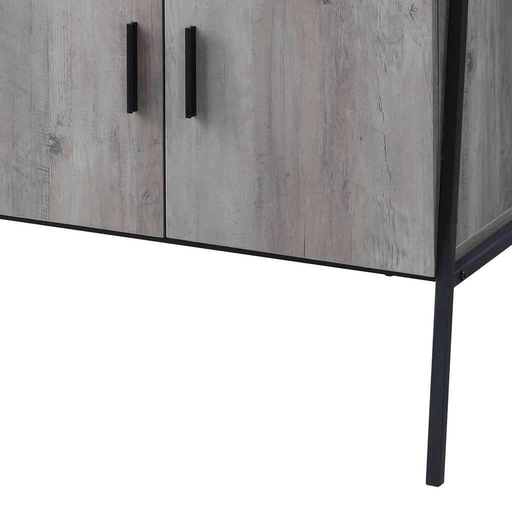 This stylish TV stand features a sturdy metal frame that ensures durability while delivering a modern industrial aesthetic that complements a variety of decor styles. Designed to accommodate televisions up to 50 inches, it includes four doors for ample storage of media components and DVDs, along with a single shelf for additional display space, enhancing both functionality and visual appeal in your living area.