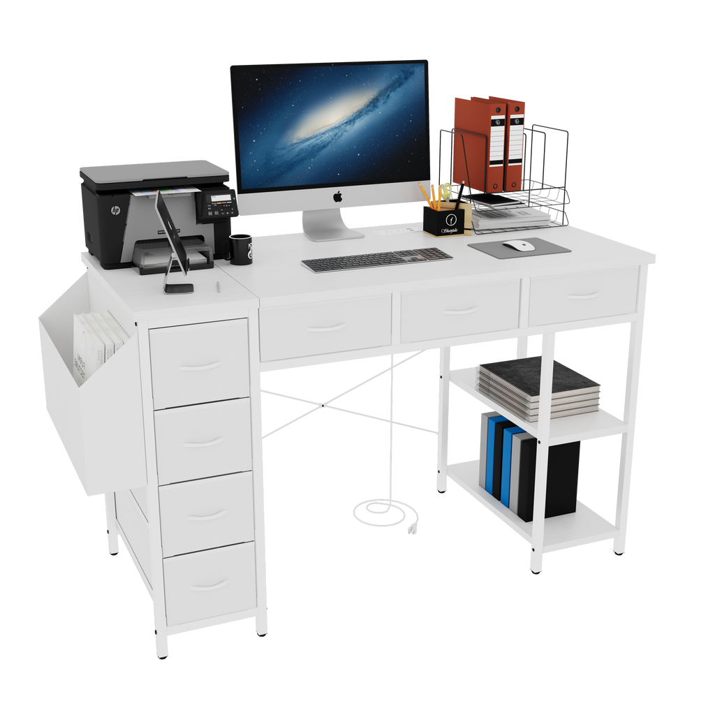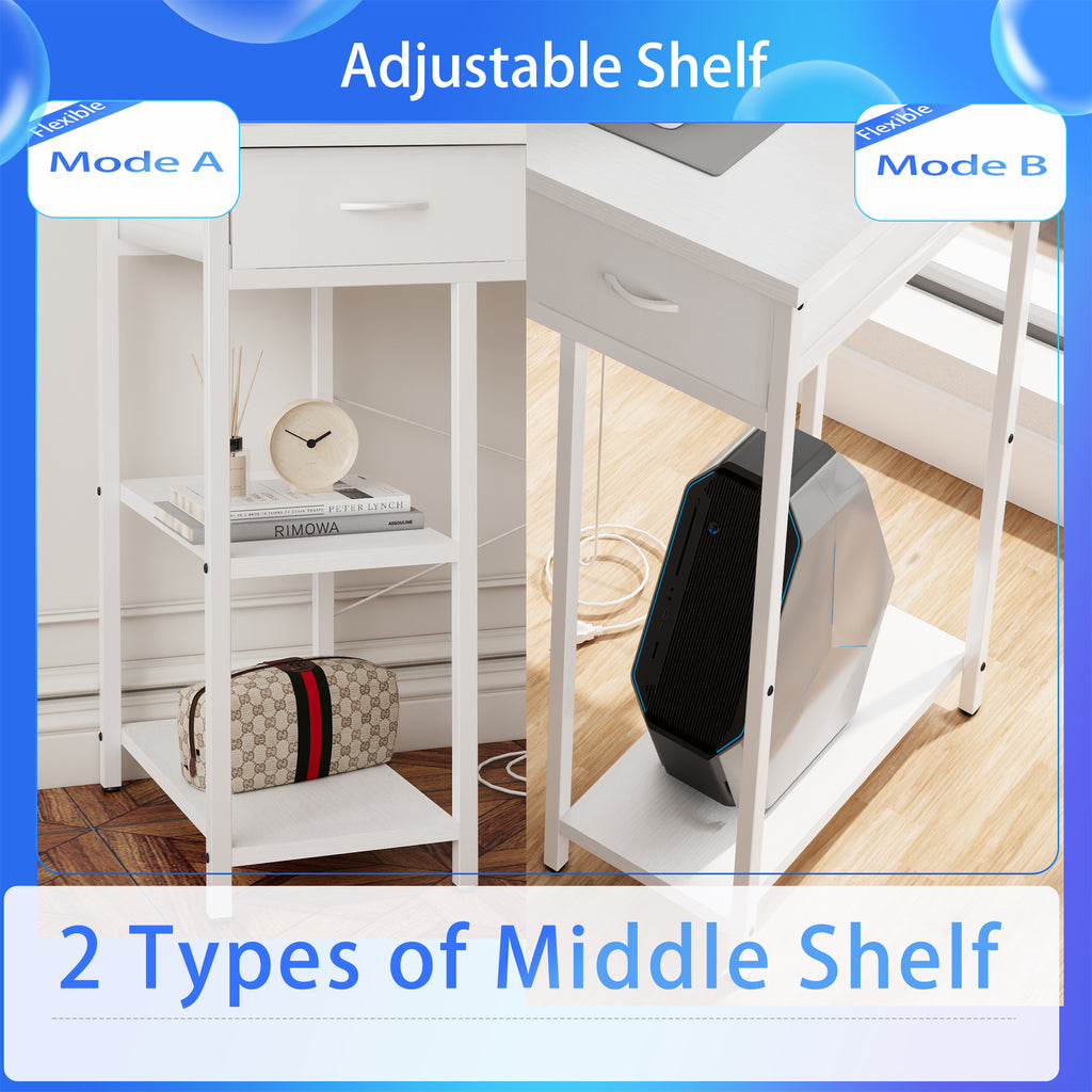 - 【Adjustable and Reversible Computer Desk】The cabinet with drawers and side pocket can be installed on the left or right side based on your preferences. The movable CPU stand and shelf allow for easy placement of your computer and printer, keeping your desktop tidy and providing ample workspace.