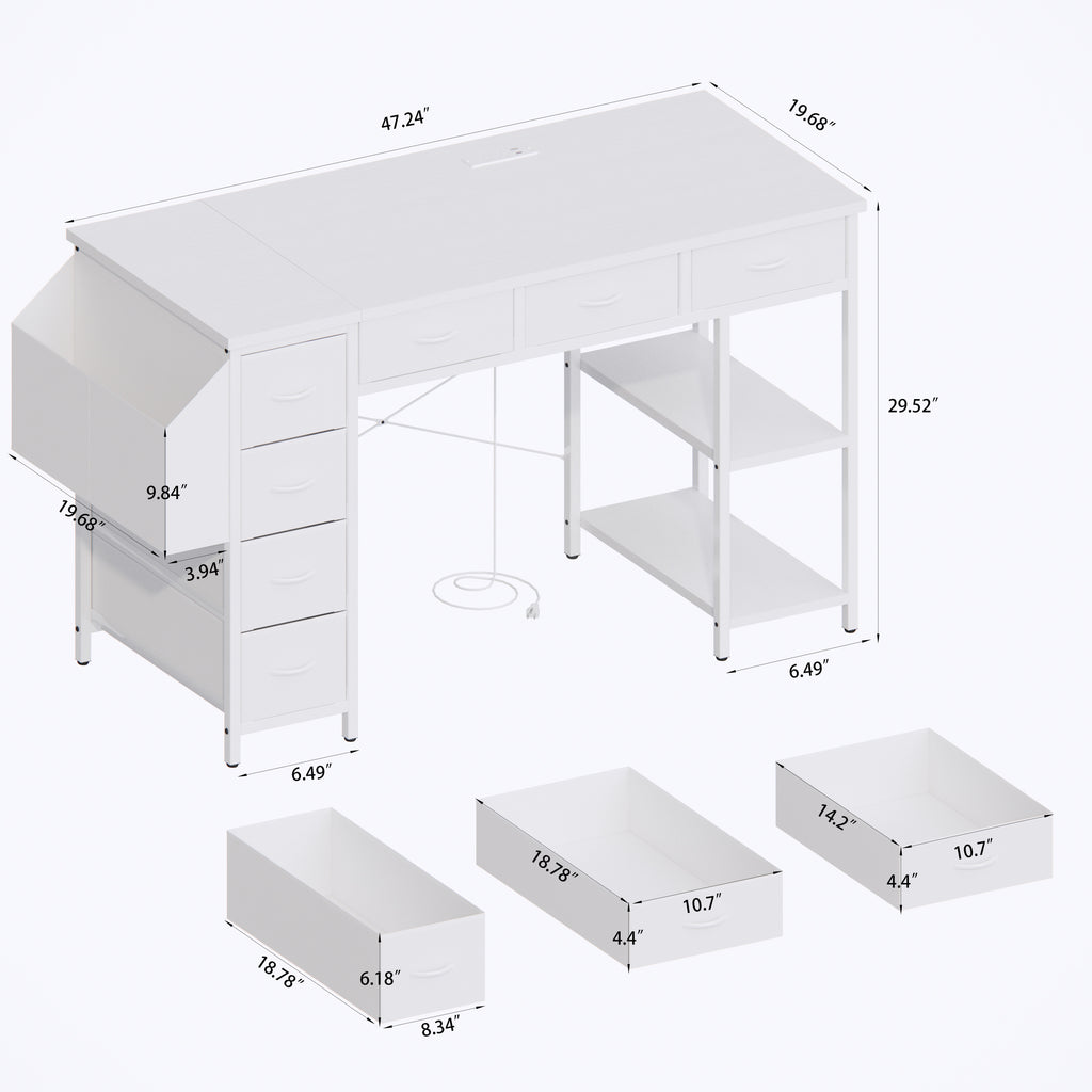 - 【7 Fabric Drawers and Extra Large Side Pocket】 Featuring 7 foldable and easy-to-pull fabric drawers (the drawer base is made of 5mm board for sturdy load-bearing), it offers ample storage space for your daily needs. Perfectly organize and store your documents, stationery, books, cosmetics, and personal items. Drawer dimensions: 4pcs at 18.8'D * 8.4'W * 6.2'D, 2pcs at 18.8'D * 11'W * 4.5'H, and 1pc at 14.2'D * 11'W * 4.5'H. Side pocket dimensions: 19'D * 12.2'W * 6.1'H.