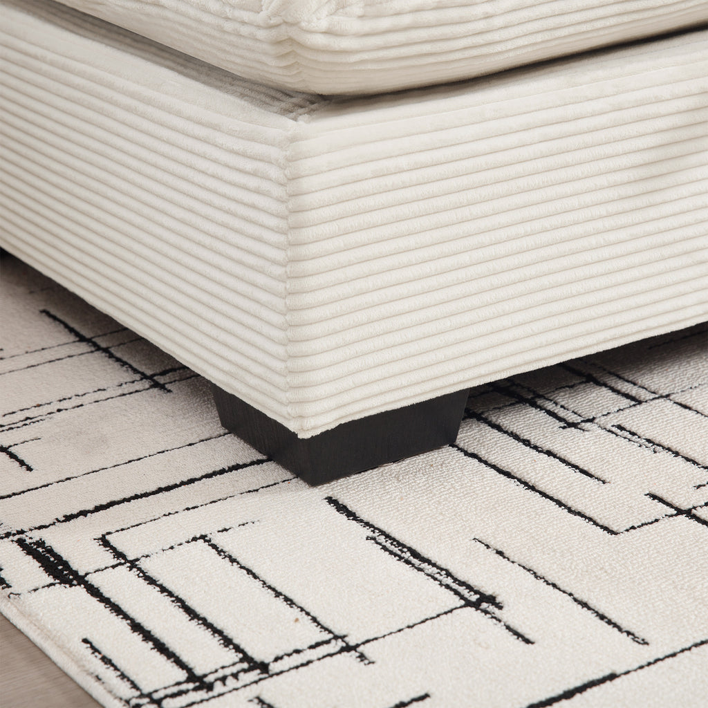 - Superior comfort - extended deep seats allows you to sit cozy on the sofa, soft waist pillow to offer excellent support to your waist, ergonomic seat angle eliminating your fatigue of the day and bringing a full sense of security and comfort. Back and seat cushion are upholstered with comfortable high-density foam cushions for ultimate comfort and support.The back cushions and seat cushions are soft and fluffy, and the stripped corduroy fabric gives it a cloud-like wrapping feel.