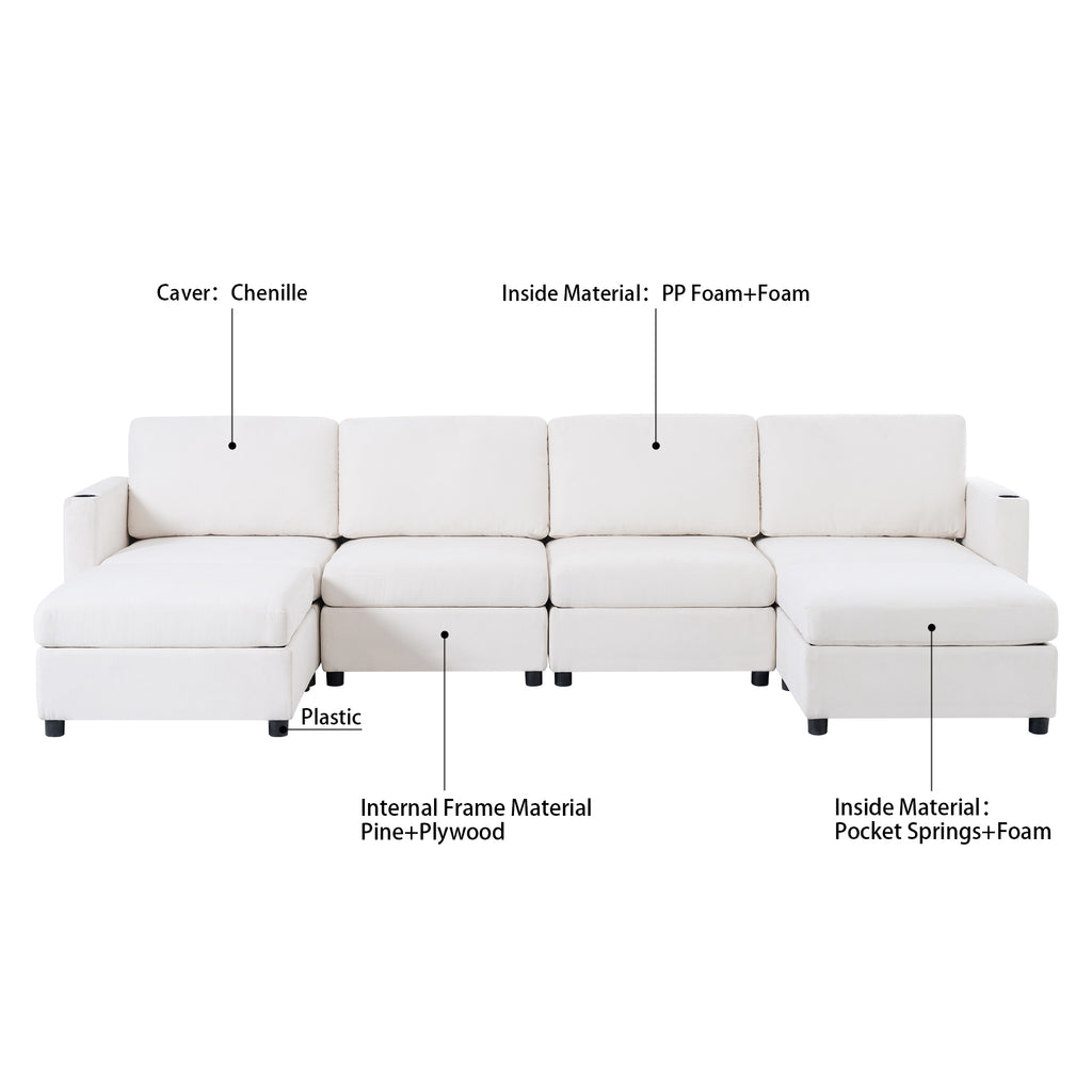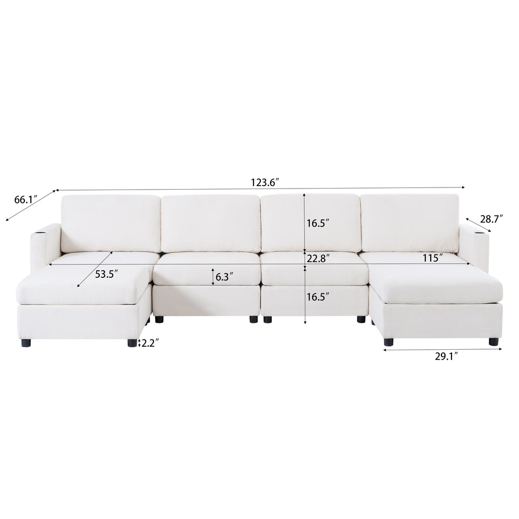 - Flexible Combination: The couch consists of a 4 seat sofa, 2 movable small ottomans.Ottomans can be connected to the 4 seat sofa by connecting pieces to form a U shaped sofa or a sofa bed. Ottomans can also be placed individually according to your needs