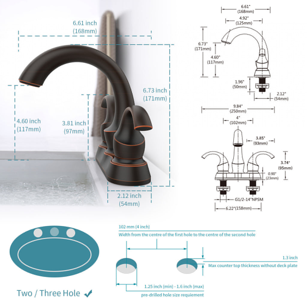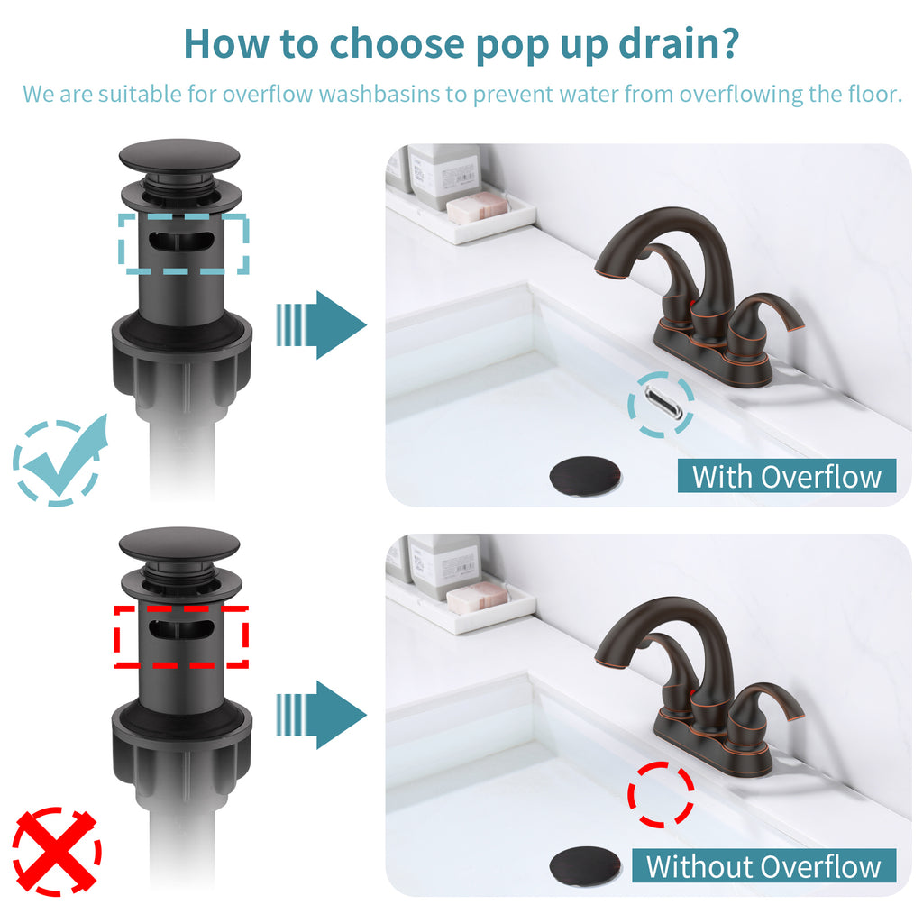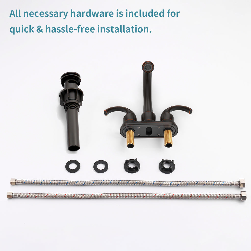 - ♥EASY TO INSTALL: The Bathroom sink Faucet is 2/3-hole, 4inch centerset design with water supply hoses and plastic Pop-up Drain which is uses the standard universal ports, convenient and safe. Please read the instructions and product details before installation.