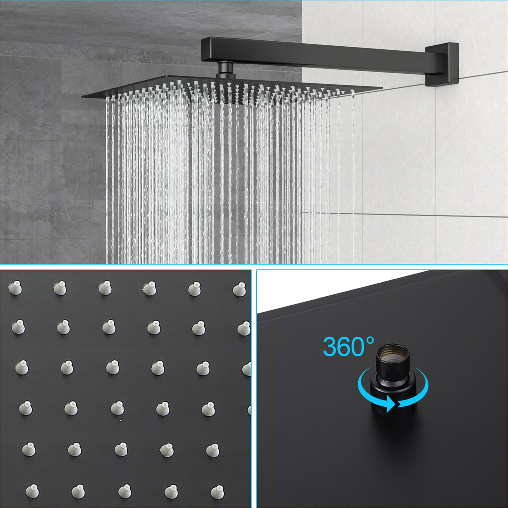 - {Rainfall Shower Head}Our ultra-thin overhead rainfall shower head offers extensive coverage, providing a soothing downpour shower experience with 360° adjustability.