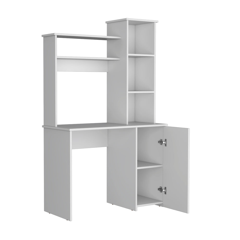 - Versatile Storage Options: Combines open shelves with a single door cabinet, offering multifaceted storage solutions.