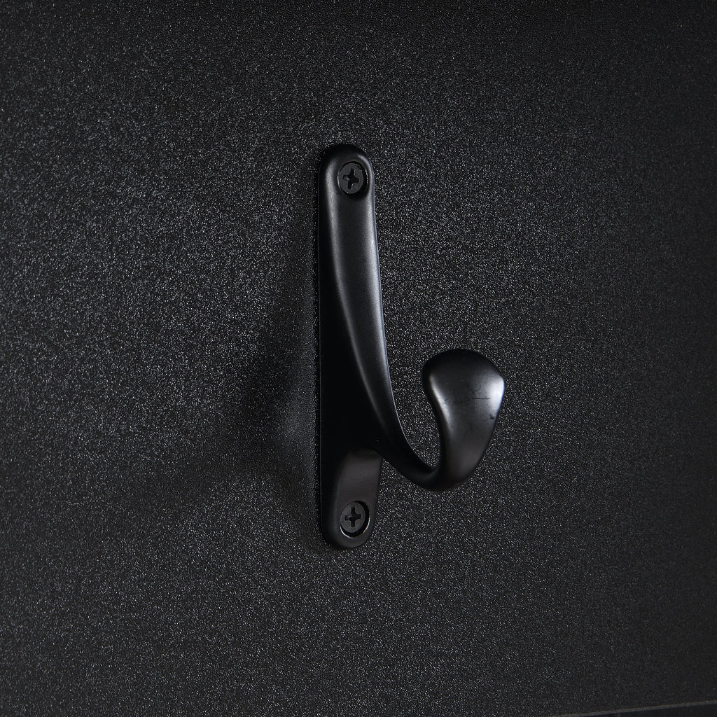 This product boasts an elegantly curved top design, setting it apart with its refined aesthetics. The uniquely shaped black hooks are not only stylish but also sturdy enough to hold weight. Additionally, the harmonious blend of wood grain and solid colors creates a charming farmhouse style.
