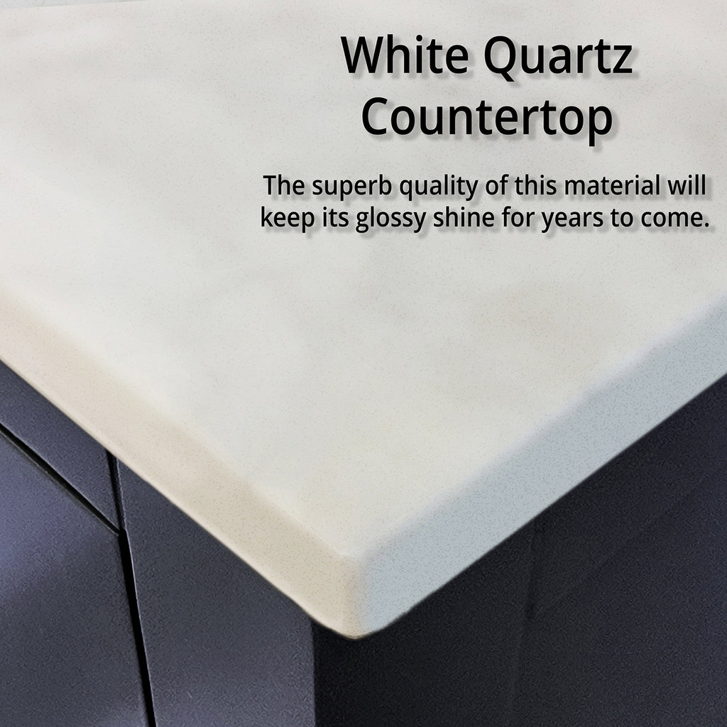 - Vanity countertop is pre-drilled for a single hole faucet for easy installation
