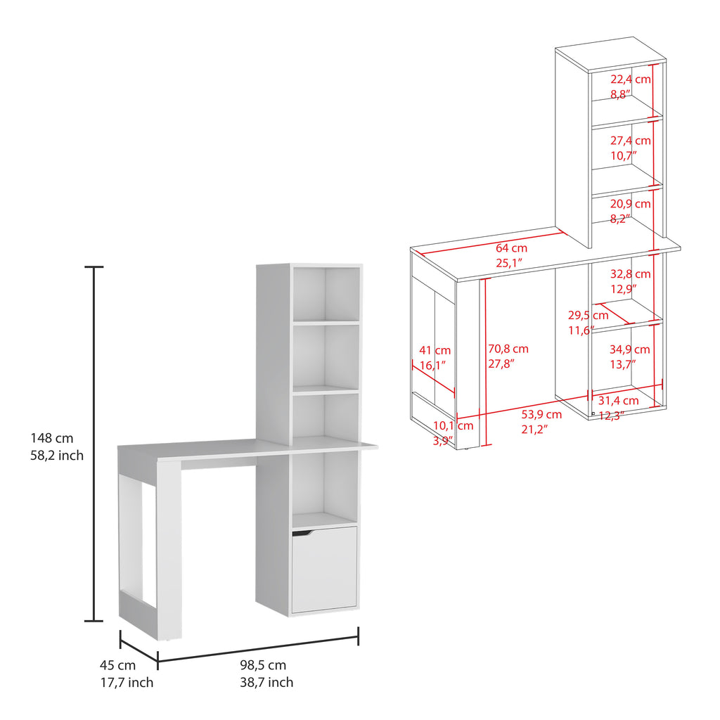 - Integrated 4-tier bookcase for storage of office essentials and decorative items.