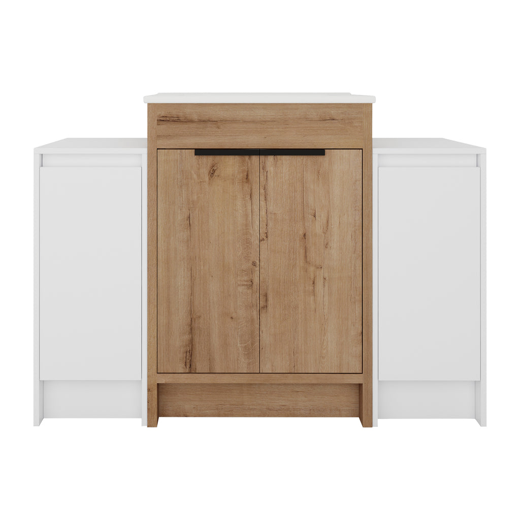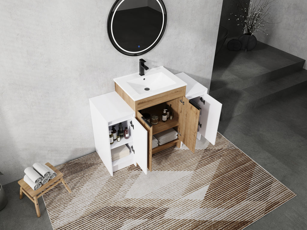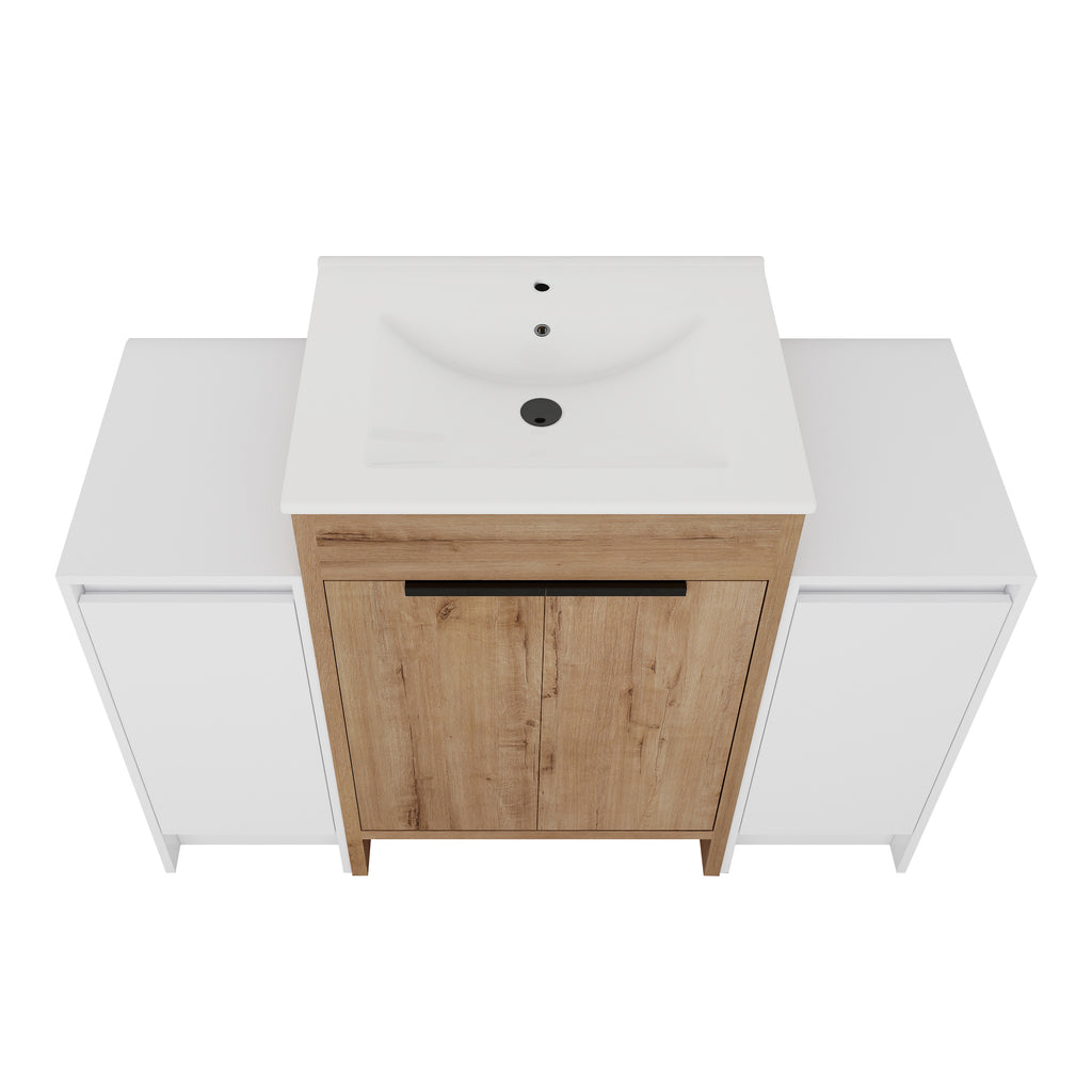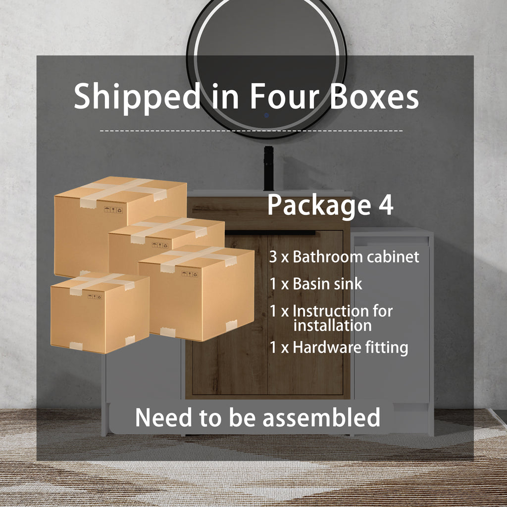 | Package includes | -1x Vanity Cabinet; -1x Ceramic Basin; -2x Storage Cabinets; -2x Metal Handle; Parts Package |