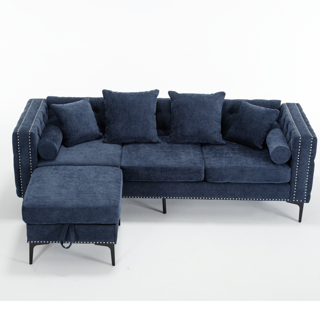 - 【Modern Fashion Sofa】Overall Dimensions - 85*53.5*37''(L*D*H). Fluffy cushions and Rivet handrail with modern metal legs sectional a stylish and timeless look that will better decorate any style of living room. Tip: This is a slip-on sofa with storage function, you can put it anywhere.