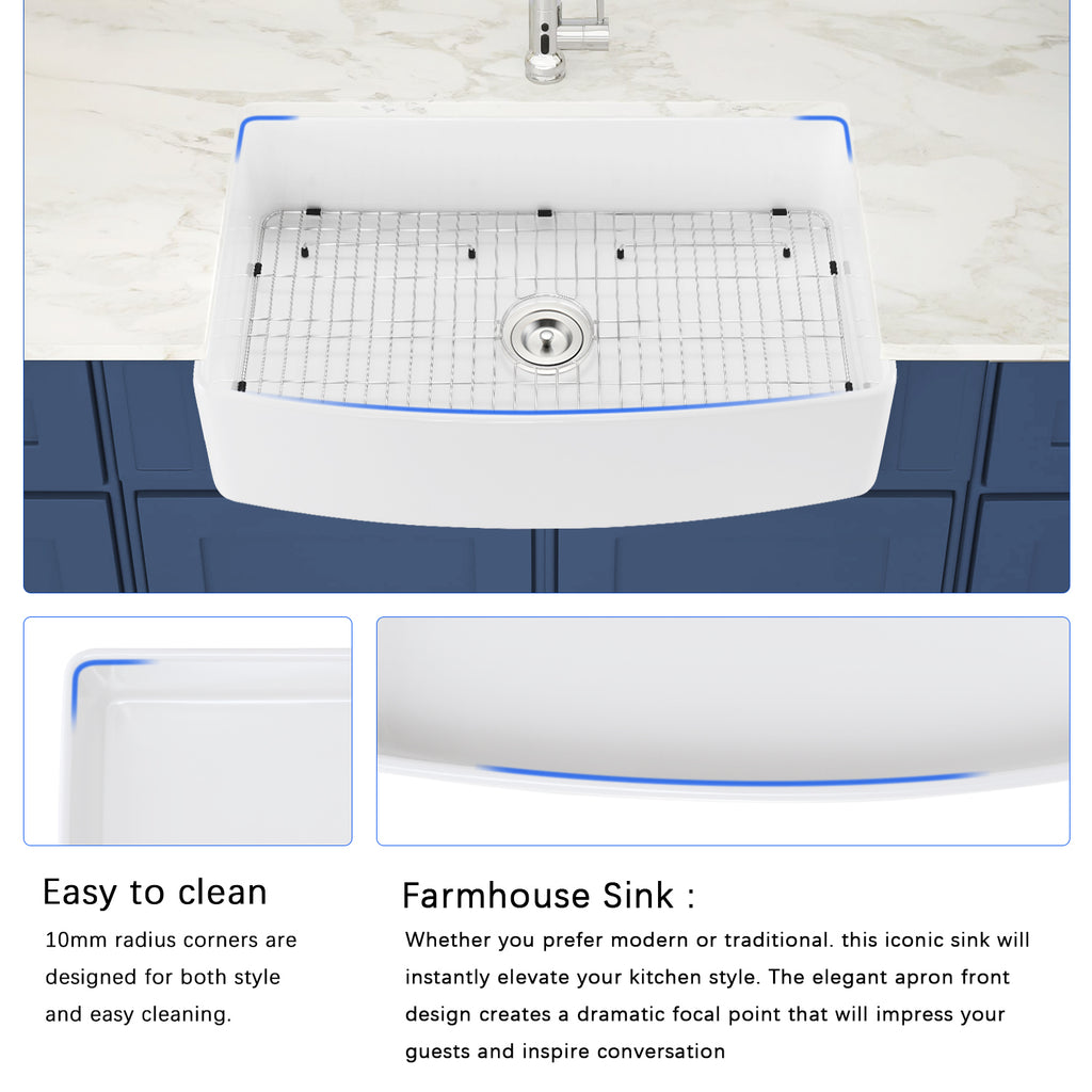 - Kitchen sink apron front with arch edge design.Which has beauty and reliable performance,make your kitchen more elegant and fashion.