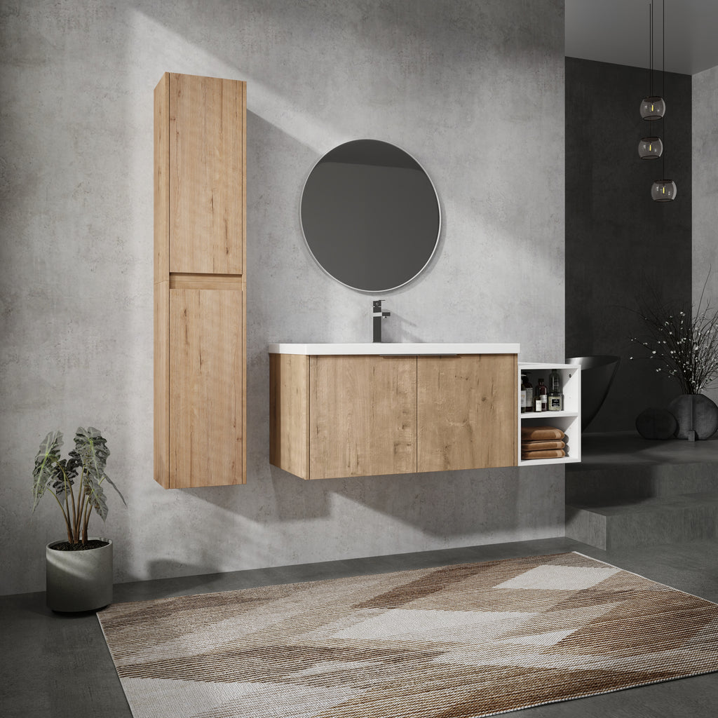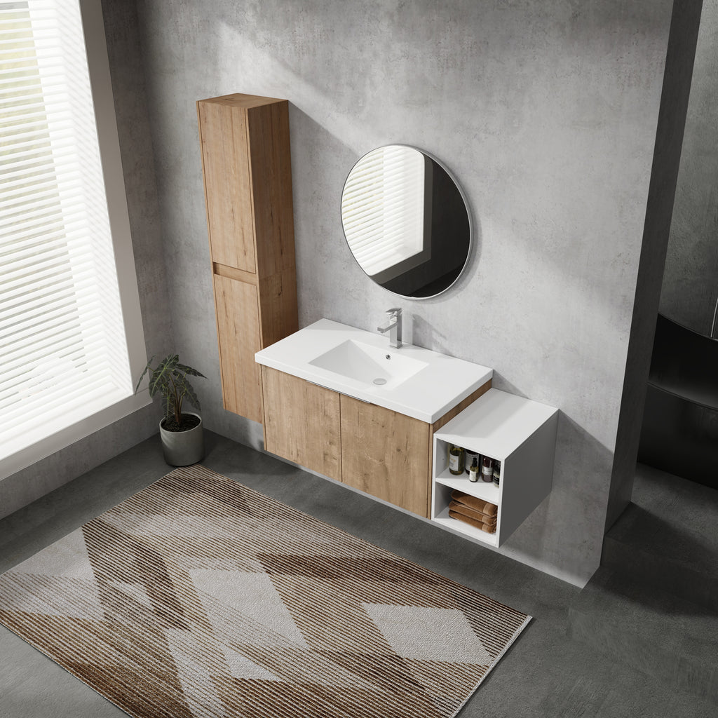| Package includes: | - 1x Vanity Cabinet;- 2x Side Cabinet;- 1x Small Storage Shelves;- 1x Resin Sink;- 2x Metal Handle;Parts Package |