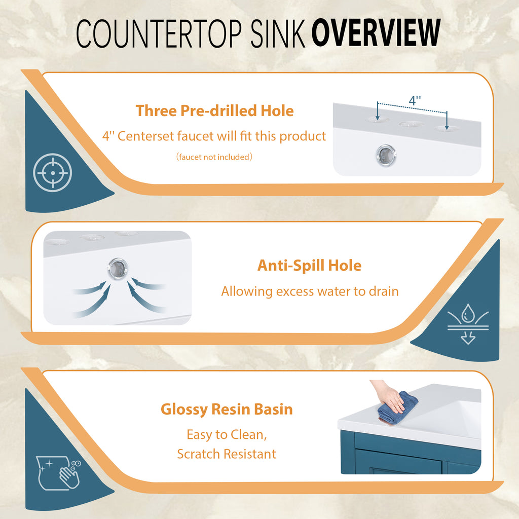 - [36'' Resin Sink]The surface of the resin undercounter basin is smooth, easy to care for and not fragile. At the same time, you can prepare a 4'' center faucet to match the basin well.