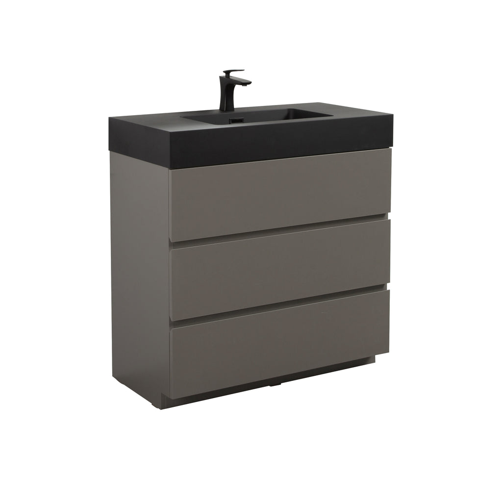 Crafted with meticulous attention to detail, Alice features a sleek and stylish matt black basin made of engineered stone, exuding an aura of understated luxury. The striking gray finish adds a touch of modernity, effortlessly complementing any bathroom decor.