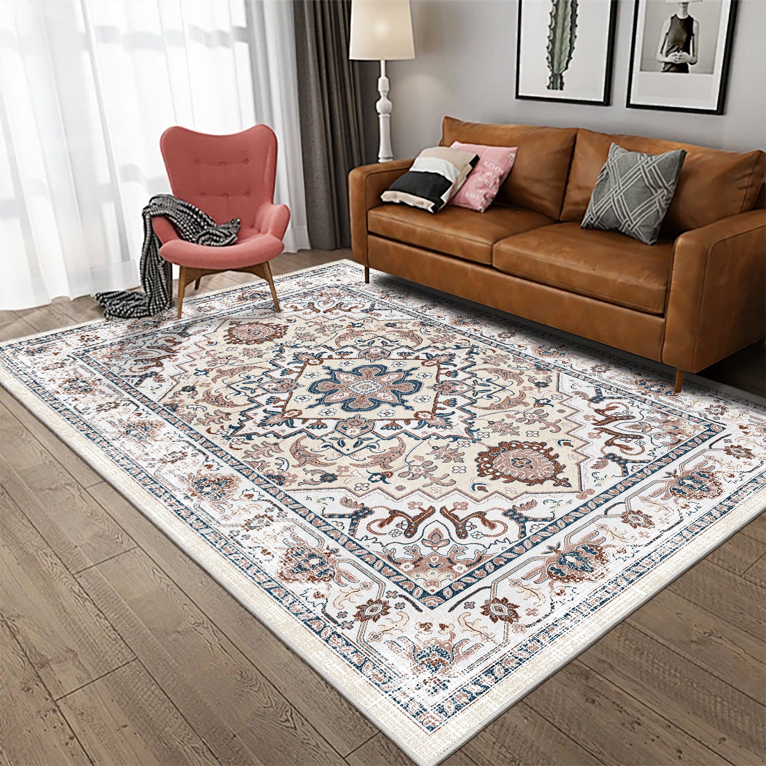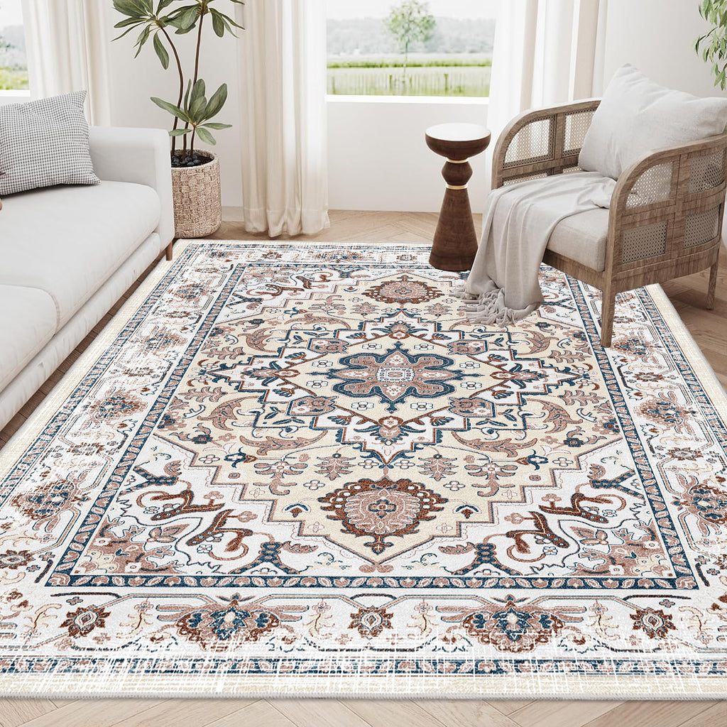 - Our washable rugs are made with ultra-fine, ultra-soft faux cashmere fibers. It will not shed fibers or be inhaled. Exquisite vintage design suitable for a variety of decoration styles. Our machine washable area rugs can bring a classic and ideal color to any place.