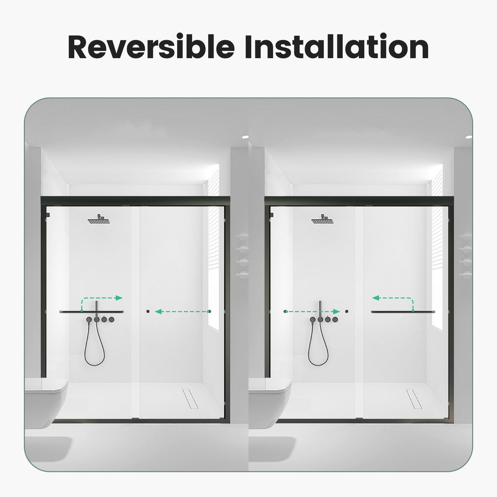 - DOUBLE BYPASS SLIIDNG: This semi-frameless shower door can be adjusted to 56 and 60 in width by cutting, maximize your bathroom layout of our double sliding door system, designed for easy access while using minimal space for smooth, unobstructed movement. The door body is light and flexible, with a long mechanical life, and provides smooth opening and closing.