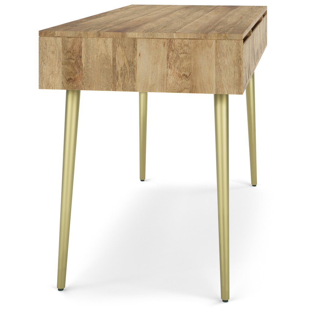 - Hand finished with a Natural wood finish and a gold finished solid brass metal inlay