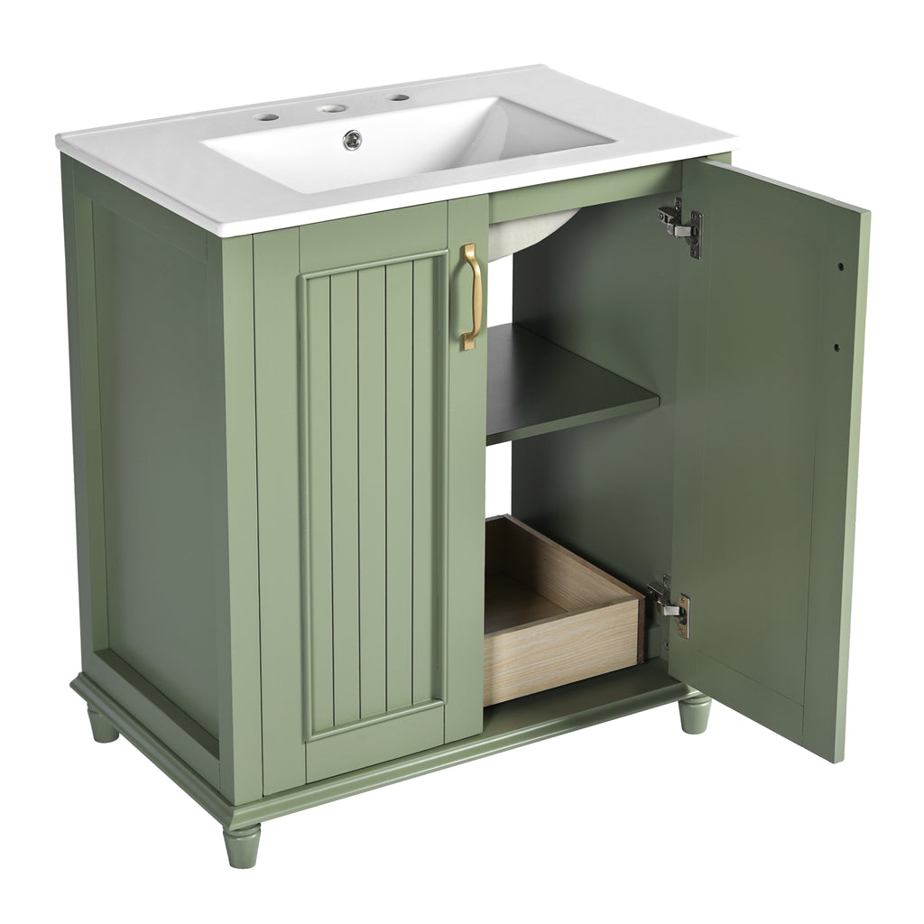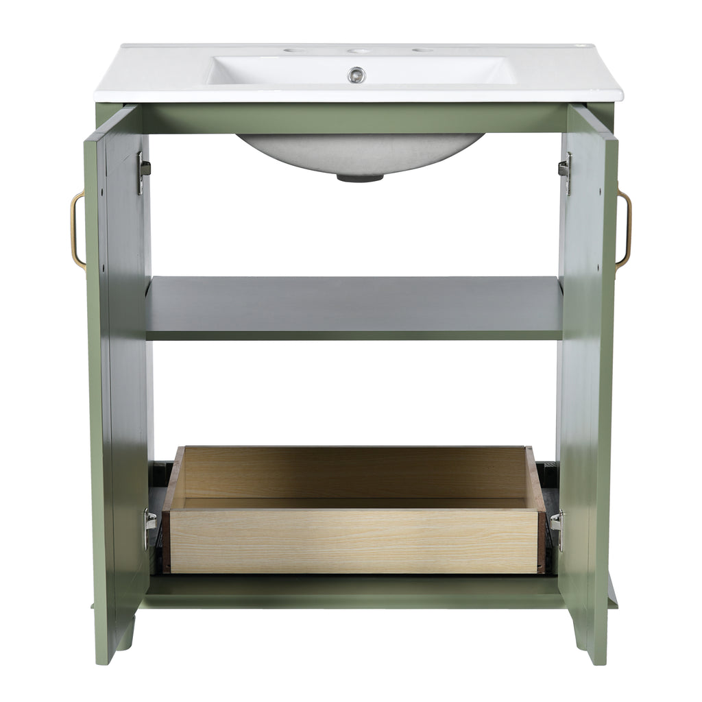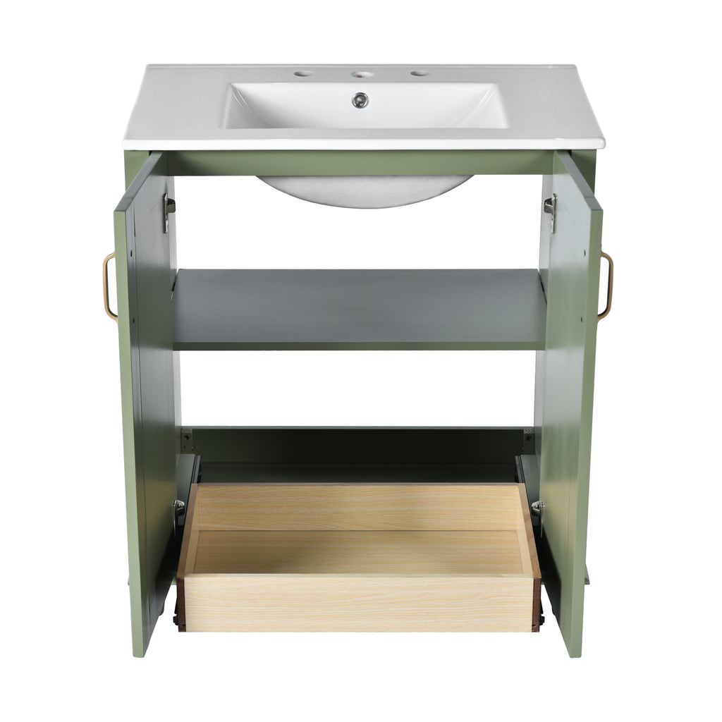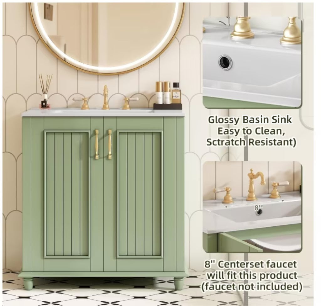 - [Modern Design]The unique green and gold bathroom vanity has extraordinary visual enjoyment under the illumination of the bathroom lamp. Sophisticated looks combined with functional construction will grace your bathroom.
