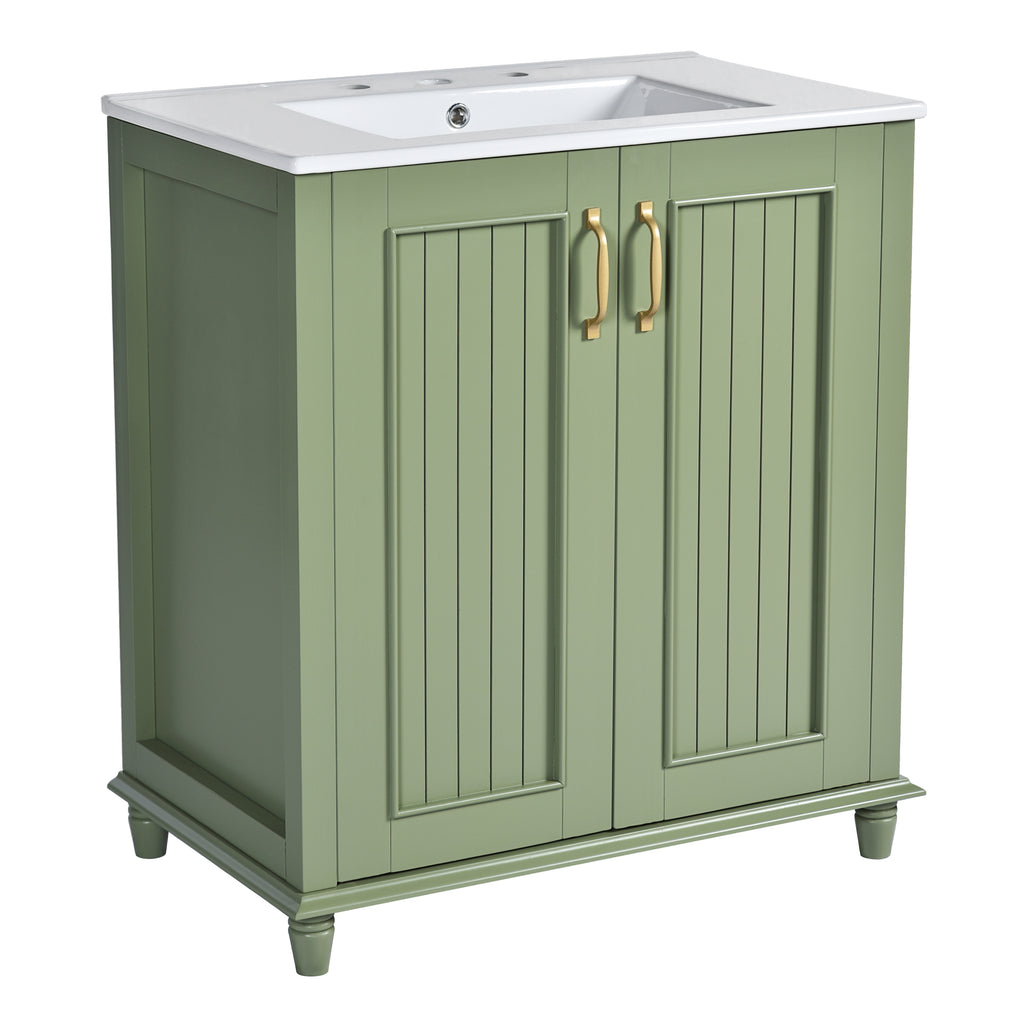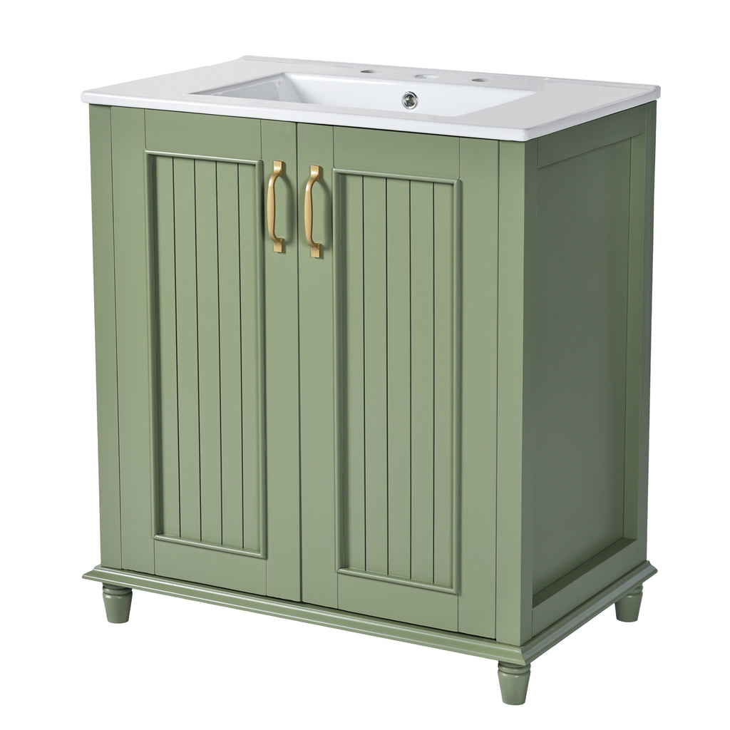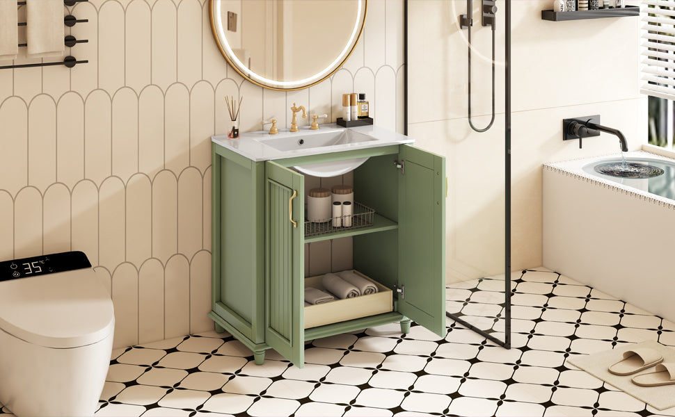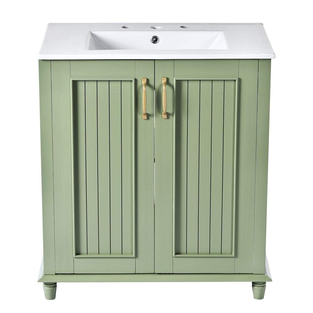 - [Modern Design]The unique green and gold bathroom vanity has extraordinary visual enjoyment under the illumination of the bathroom lamp. Sophisticated looks combined with functional construction will grace your bathroom.