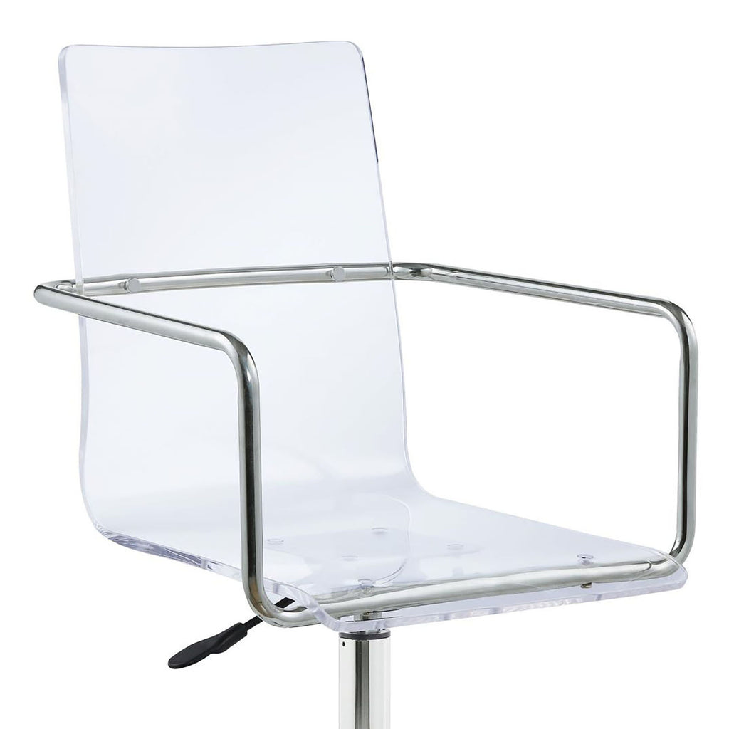 The futuristic design of this clear acrylic office chair will elevate your home office to the peak of cutting-edge design. A gleaming chrome frame and sharp, square lines give this chair an undeniably cool attitude