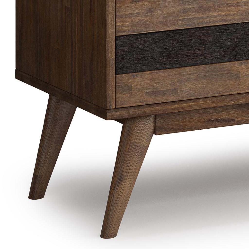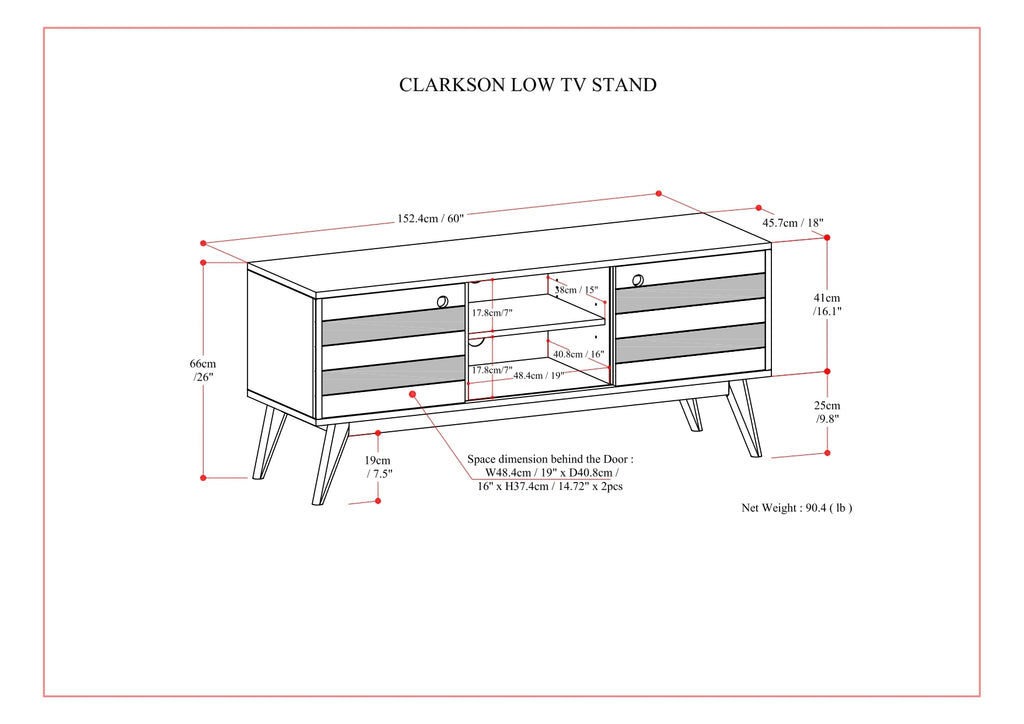 - Mid Century design includes dark brown accent detail and discreet cut out door handles