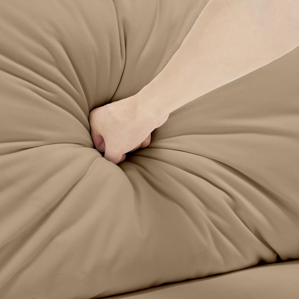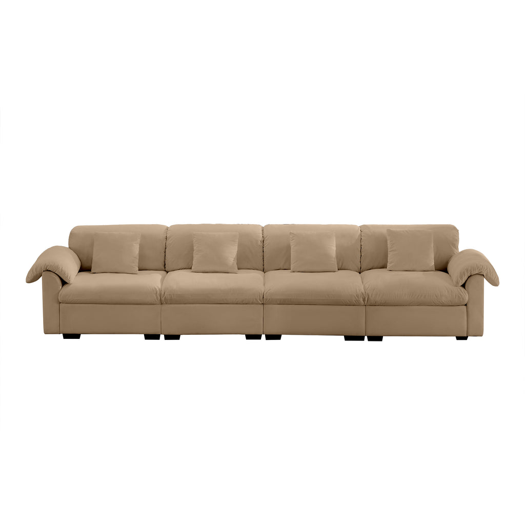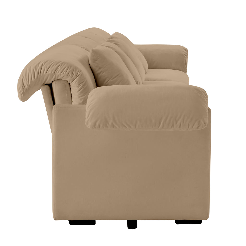 - Unique design - This sofa is made of exquisitely beautiful velvet fabric. Unique armrest and backrest design gives the sofa a modern touch, making your home look refined, cozy, and stylish, while also ensuring high comfort. Looking from different angle , its special arm pillows and back pillows are just like cloud is breezing in the sky. The rich colors of velvet add to its charm, creating a visually stunning effect.