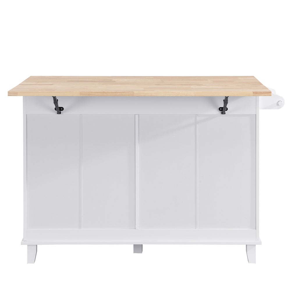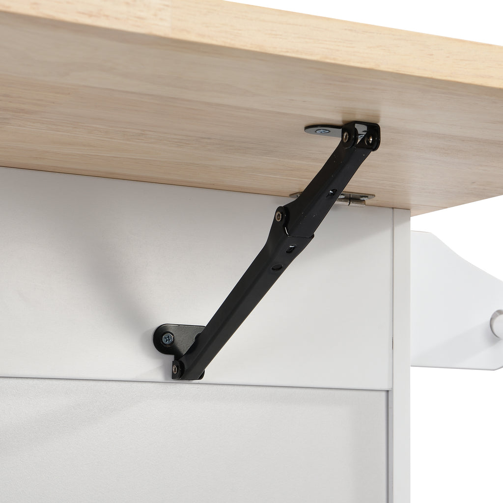 - [Rubber Wood Tabletop with Drop Leaf] Featured with water and stain-resistant, rubberwood is always the first choice for an island top. Designed with a large countertop with drop leaf, you can fold down the side when not in use or open it to provides ample space for easily cooking.