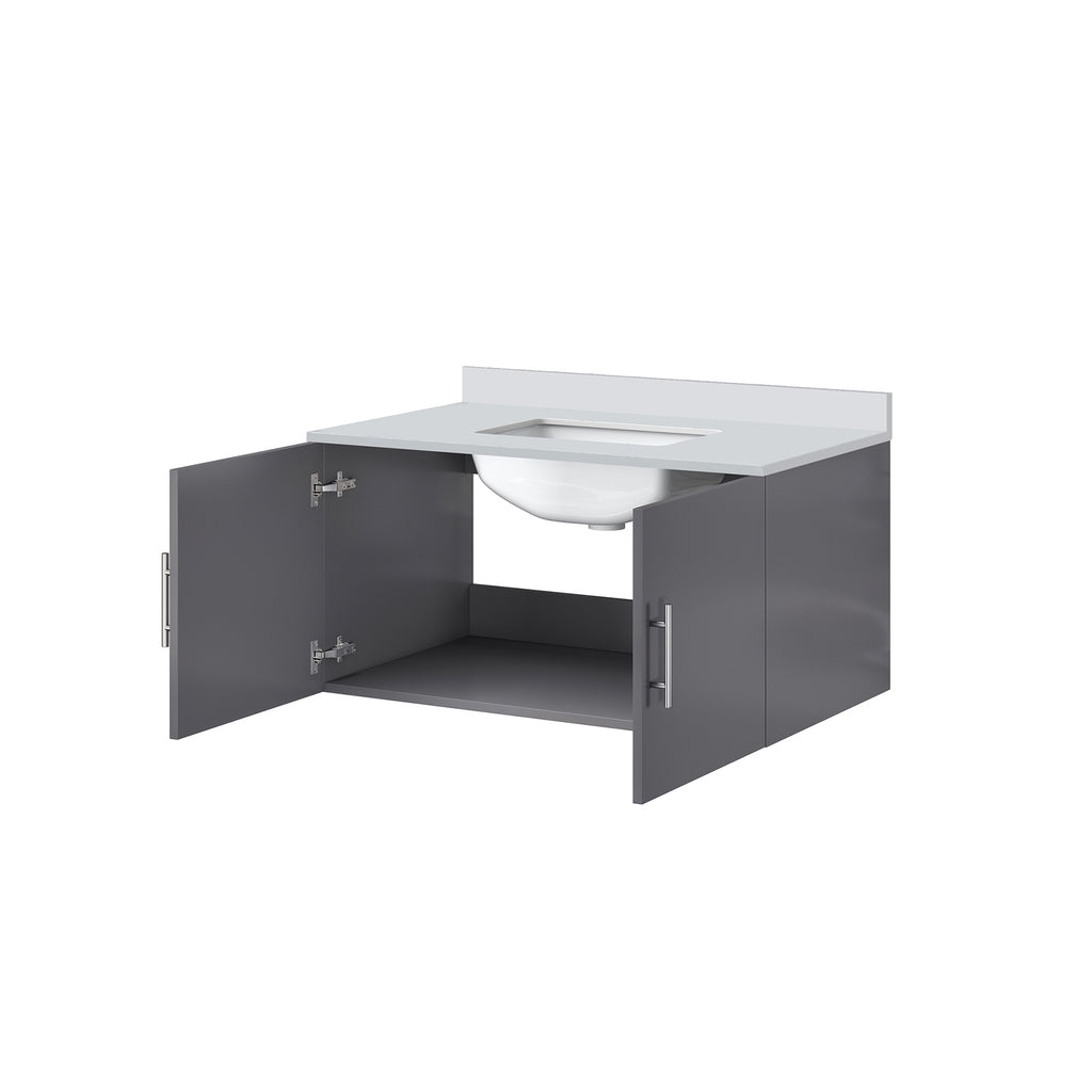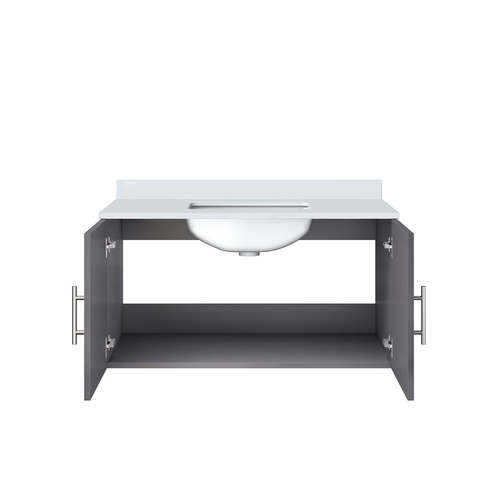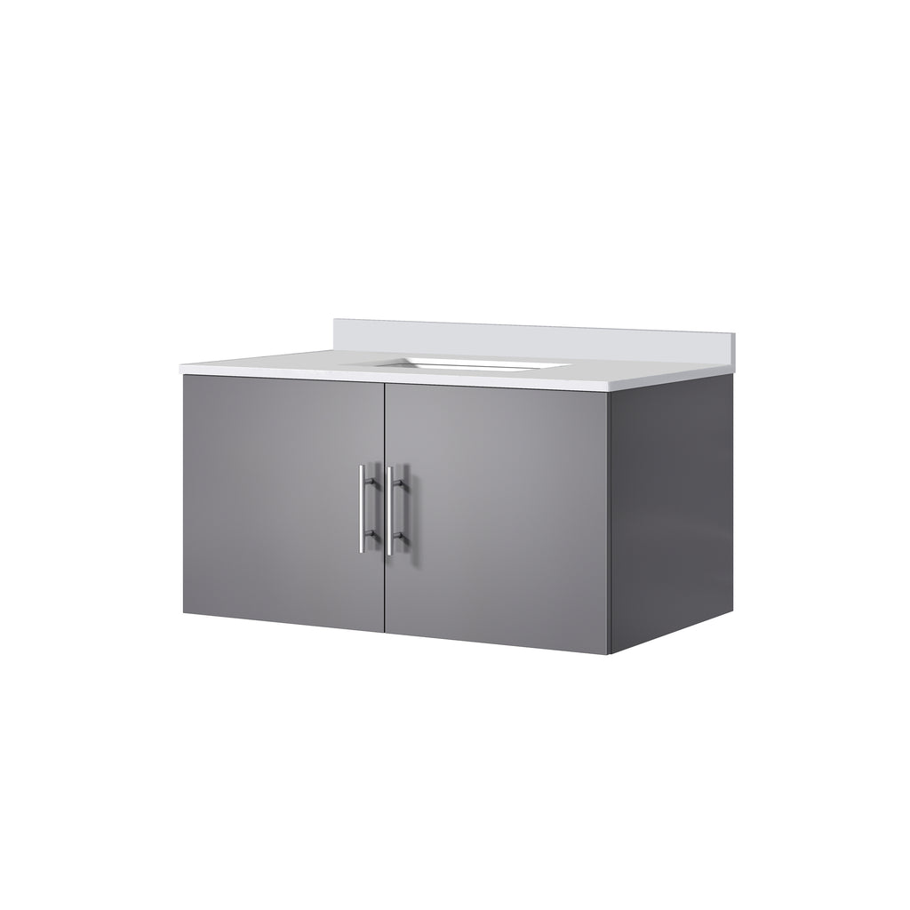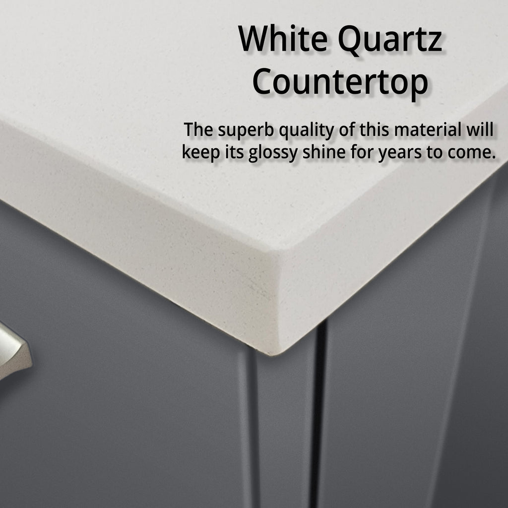 - Vanity countertop is pre-drilled for a single-hole faucet for easy installation