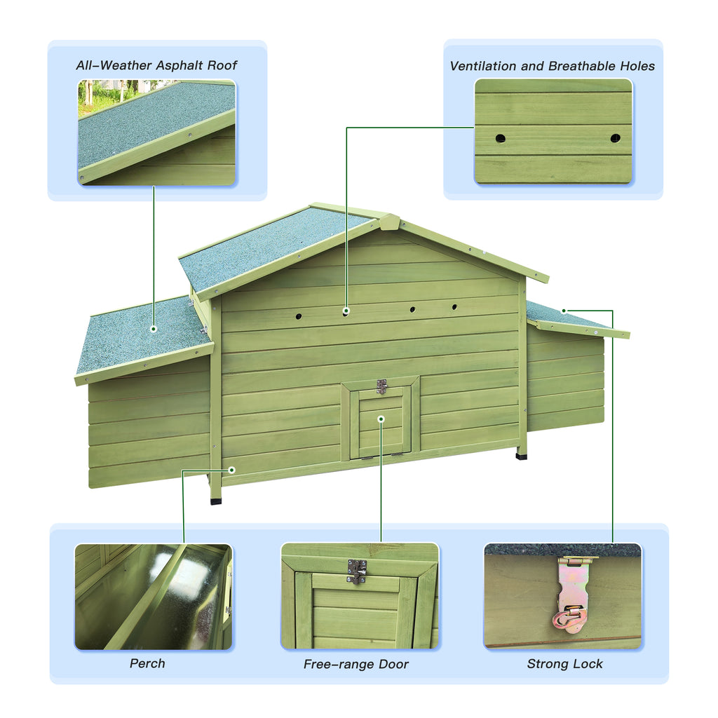 - Chicken perch inside : The perch conform to the standing randian of chickens for roosting.