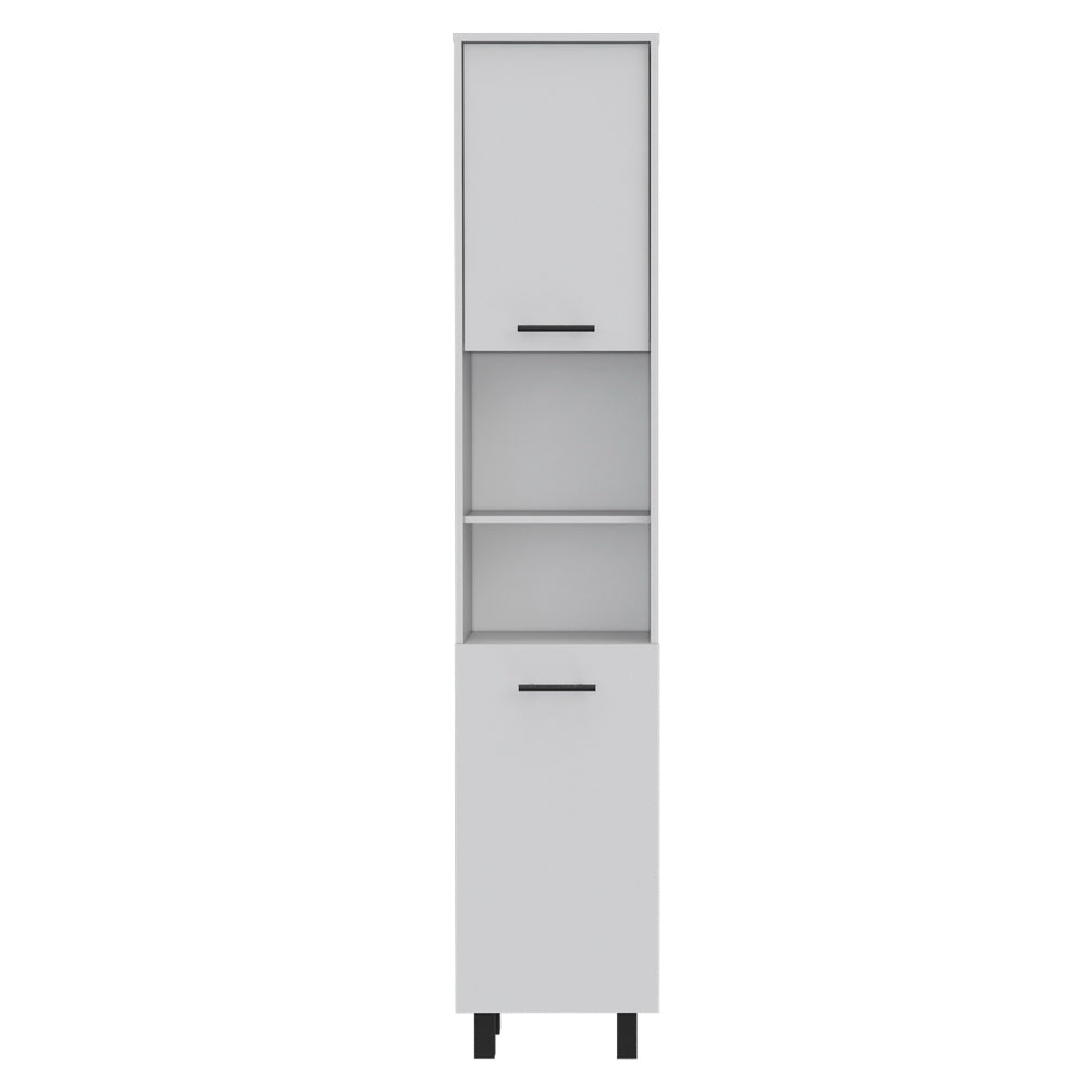 - The pantry cabinet features two open shelves in the middle, perfect for storing spices, cookbooks, or anything else you need