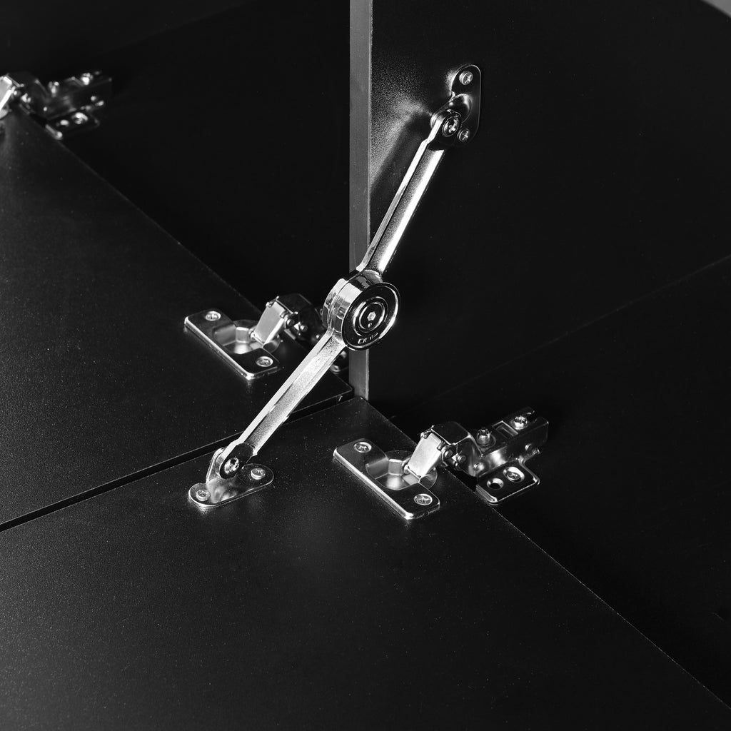 The hall tree, constructed from particle board, provides good sturdiness and durability. The metal legs, also featuring remarkable load-bearing capacity, support the entire structure. It also boasts robust and reliable pull-down door hinges, which are designed to withstand frequent use.