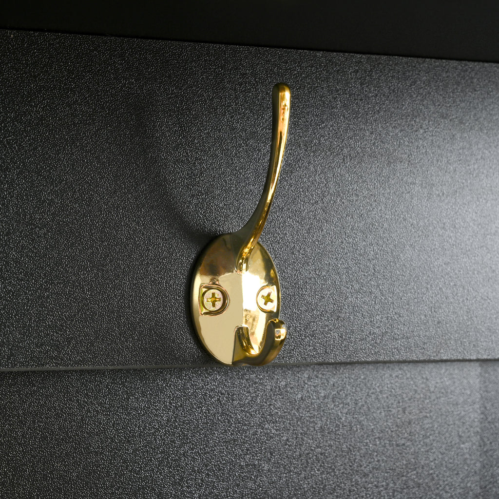 This hall tree is a bright and glamorous storage cabinet with high gloss fluted textured doors, paired with shiny golden hooks, handles and legs. Its modern and elegant appearance design will enhance the decorative style of any living space.