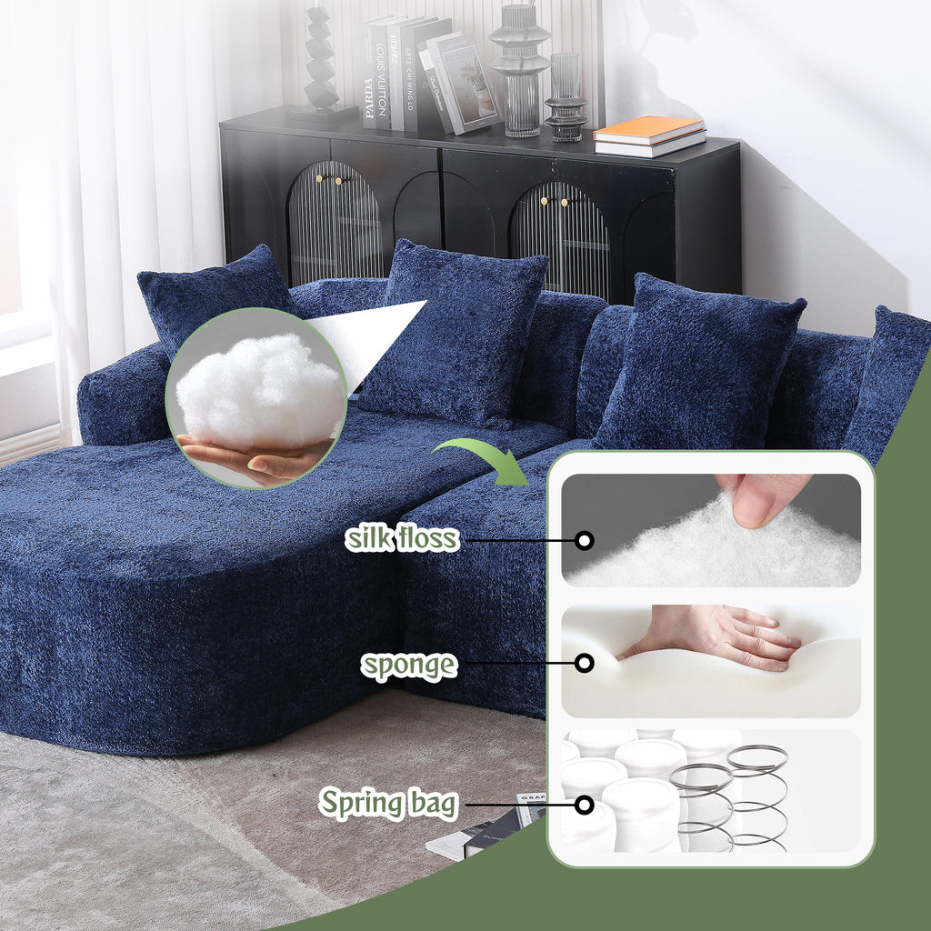- L Sofa with wider armrests, deeper seat depth, and raised backrest provide a more comfortable seating experience. The 5 small pillows included for free can be cradled in your arms or leaned against your back, allowing you and your family to relax even more. The super wide sofa gives every part of your body plenty of space to relax.