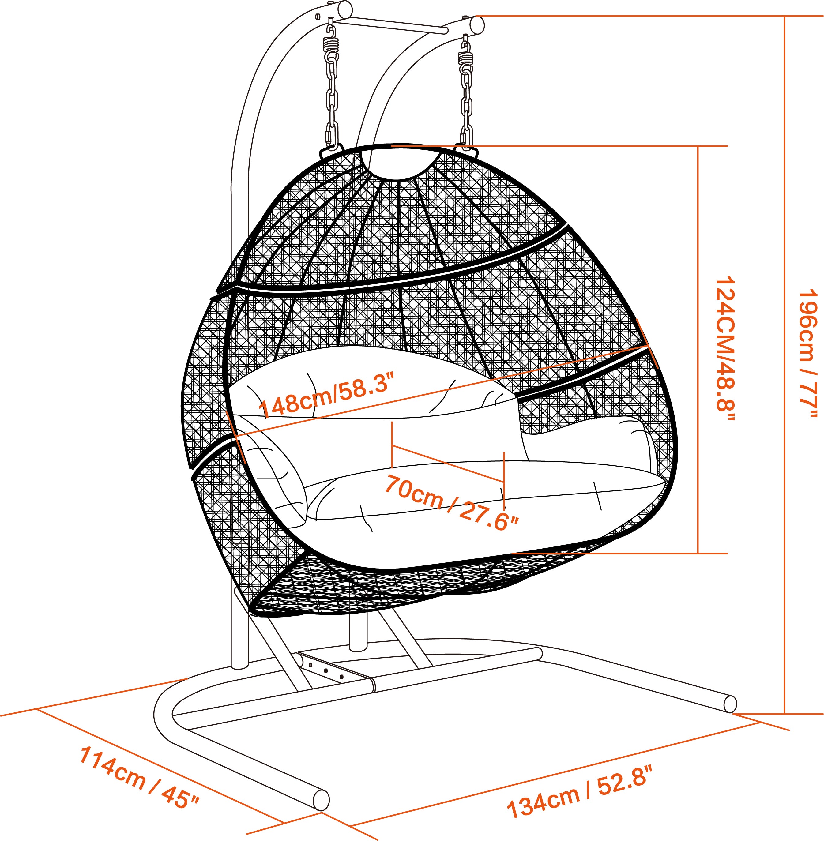 Supported by a stand constructed from strong and durable iron. Fits 2 people and enough space for any position that you like
