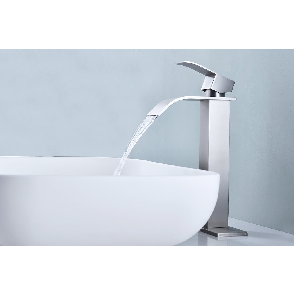 This bathroom sink faucet features a waterfall nozzle design, giving you a new water experience. The appearance is simple and stylish, suitable for any bathroom style. The single handle provides easy control of water flow and temperature, delivering superior performance.