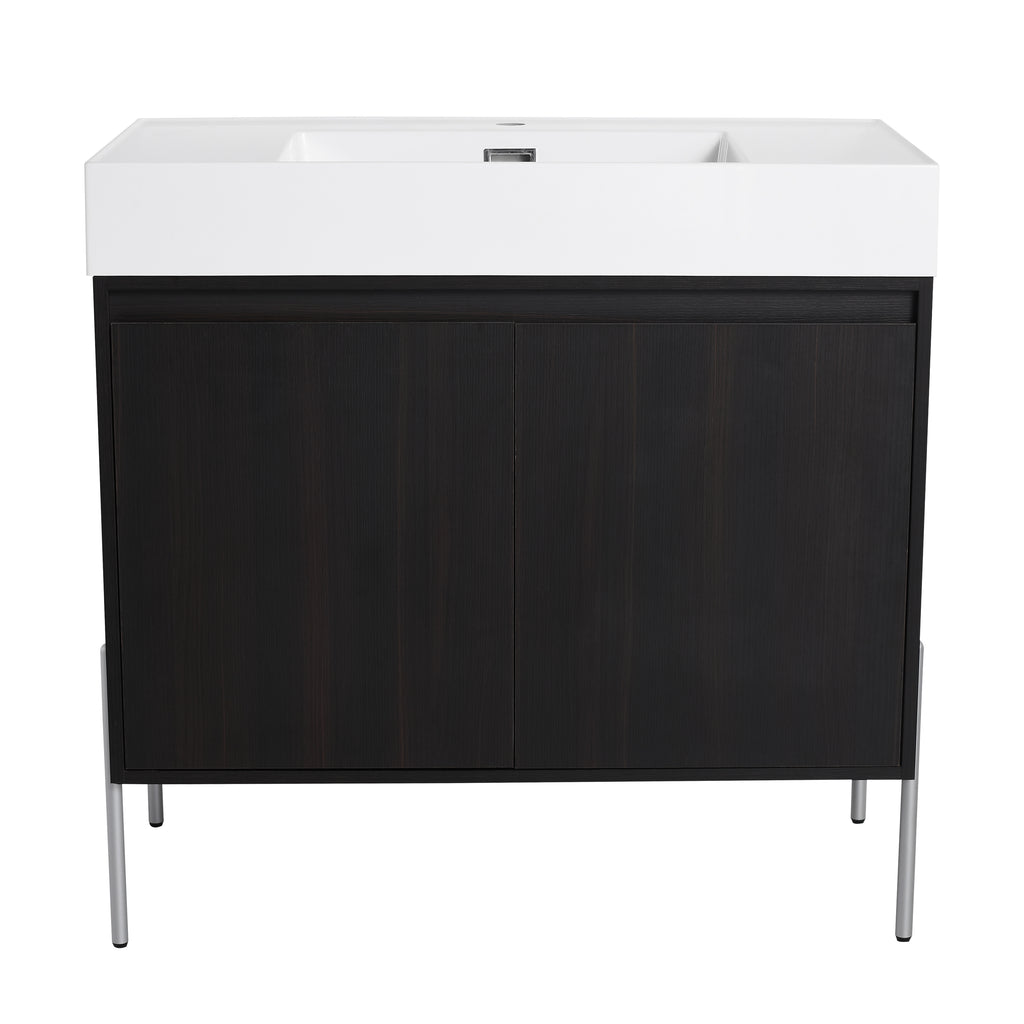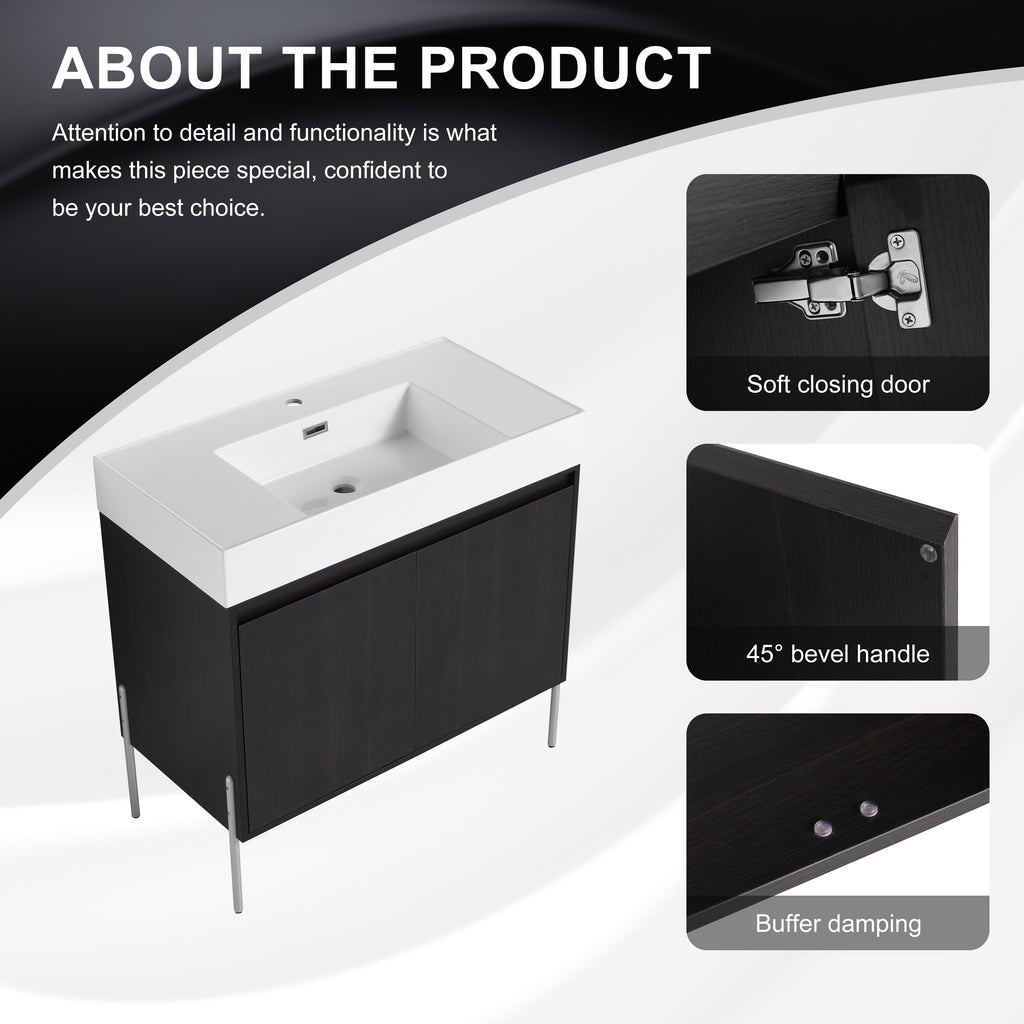 - [Durable Material Plywood]: Vanity base is made of high quality 'Eco-Friendly' plywood that surface material used 'Scratch & Water-Resistant' melamine, which is designed to not only withstand threats of moisture and humidity but also easy to clean and maintain.