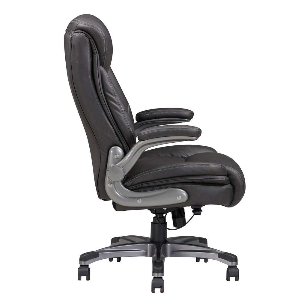 Elevate your office space with this Gray Bonded Leather Office Chair where luxury meets practicality. This executive office chair is a blend of sophistication and functionality, perfect for any hardworking professional.